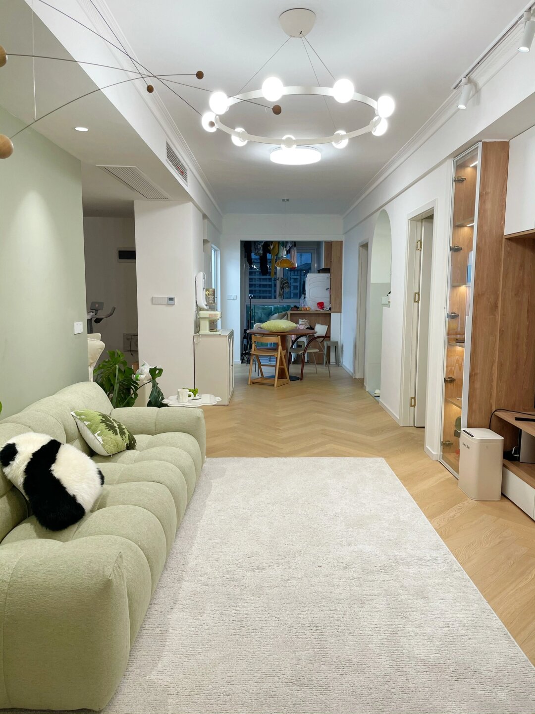 13w装出我的99平绿色系小家(附硬装清单) 关于我家:套内82平,建面99平,小三室,双阳台,硬装 13w,电器4.8w+,软装3w~ 关于我的装修灵感: 整体风格,打造我的绿色系小家,我做了一些“小心机”,比如沙发选择了绿色,背景墙刷的绿色乳胶漆,小花花的绿色地毯随意摆放搭配~还放了一些绿植~ 铺上木地板以后层高只有2.6米,没有复杂吊顶,单眼皮边吊30cm,配上9头的法式奶油风吊 灯,简单~又耐看~ 关于硬装清单: 半包一口价:52000 封窗:6800(断桥120) 铝扣板吊顶:1260 全屋门:6400 灶台和窗台石:3055 全屋砖:4900 美缝:3500 木地板:12600(新三层木皮面,人字拼包145一平,人工费30一平) 全屋定制:31000(万华禾香板650一平) 石膏线:500(10元一米,包工包料) 浴室柜:620 1368(次卫岩板做的一体盆) 蹲便器:474 花洒:2150 水龙头:600 浴缸:1914 全屋灯:2500 开关:1051 好了,今天就分享到这里啦~谢谢喜欢#装修[话题]# #软装[话题]# #装修清单[话题]#
