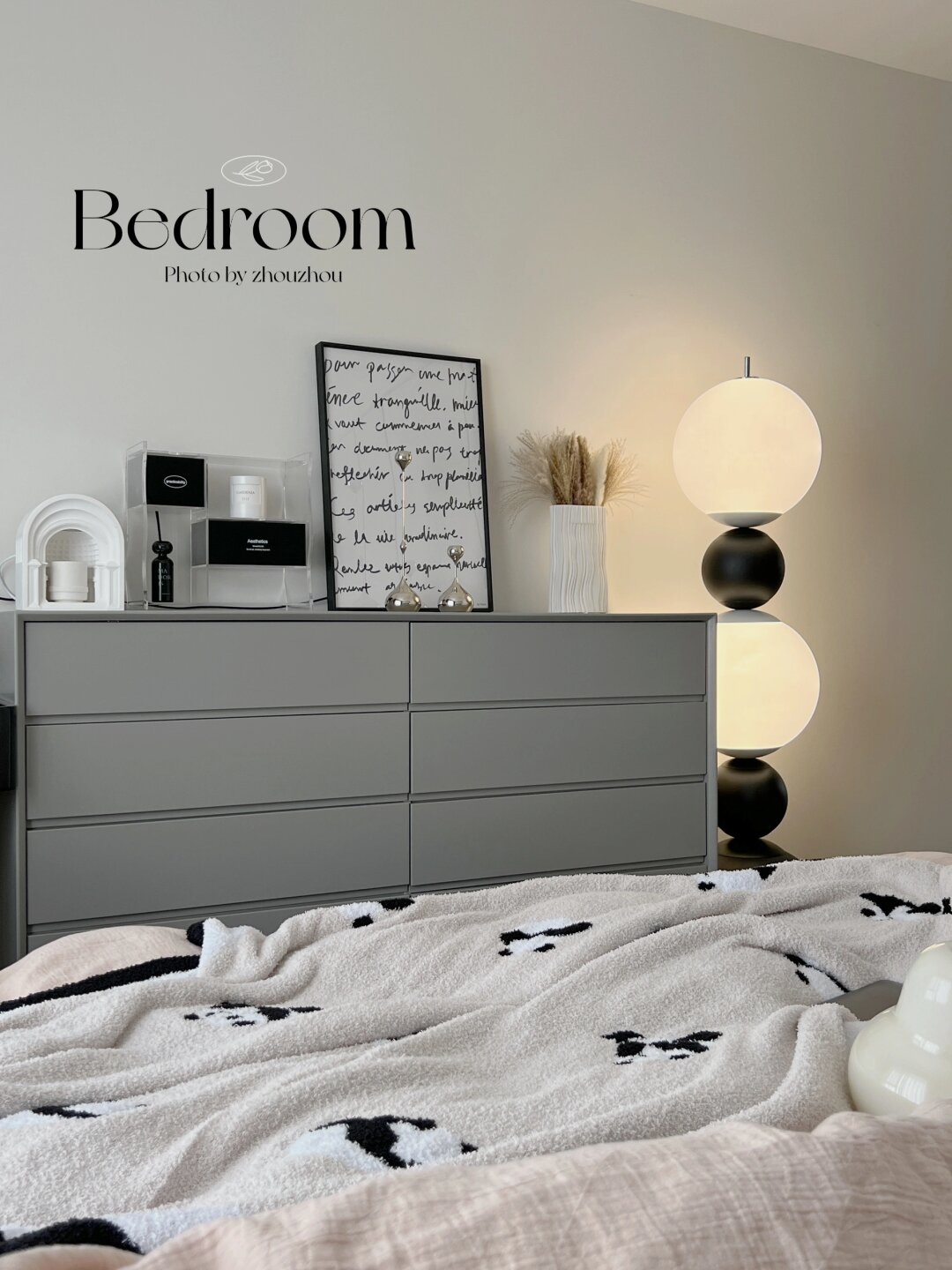 14平小卧室,真的是越住越爱 我的主卧虽然只有14平 但是每一寸地方都被我利用起来了 蕞满意的就是床尾布置啦 床尾距离1.16米,梳妆台45㎝宽,斗柜40㎝宽,过道剩76㎝刚好过人! 如果你们的户型和我的一样,真的可以这么布置起来哦!