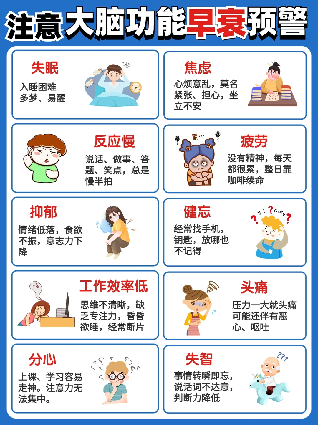 如果你也跟我一样,可能要开始注意脑部健康了,大脑早衰的预警信号,你中招了吗?(见图1)