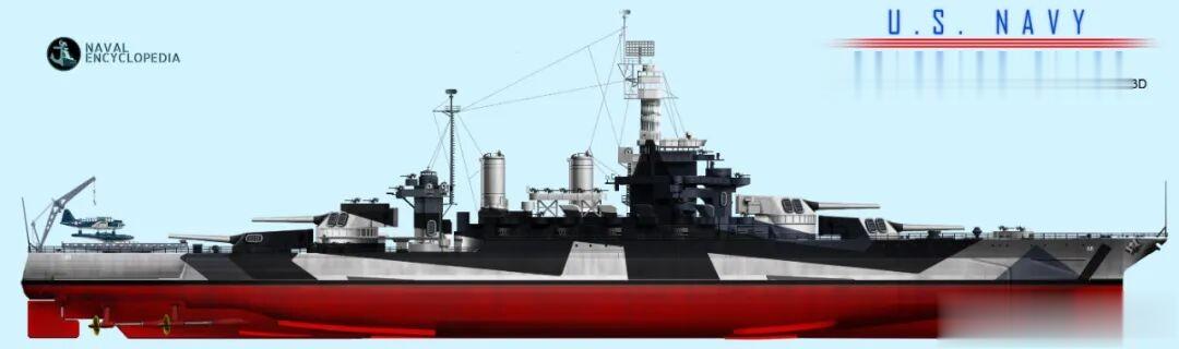 2、总体设计科罗拉多级的总体设计高度延续了田纳西级的方案,该级舰全长190.3米,宽29.7米(现代化改装后约32米),标准排水量约32500吨,满载时增至约37500吨,设计吃水为9.3米。现代化改装后标准排水量34000吨,满载38400吨。