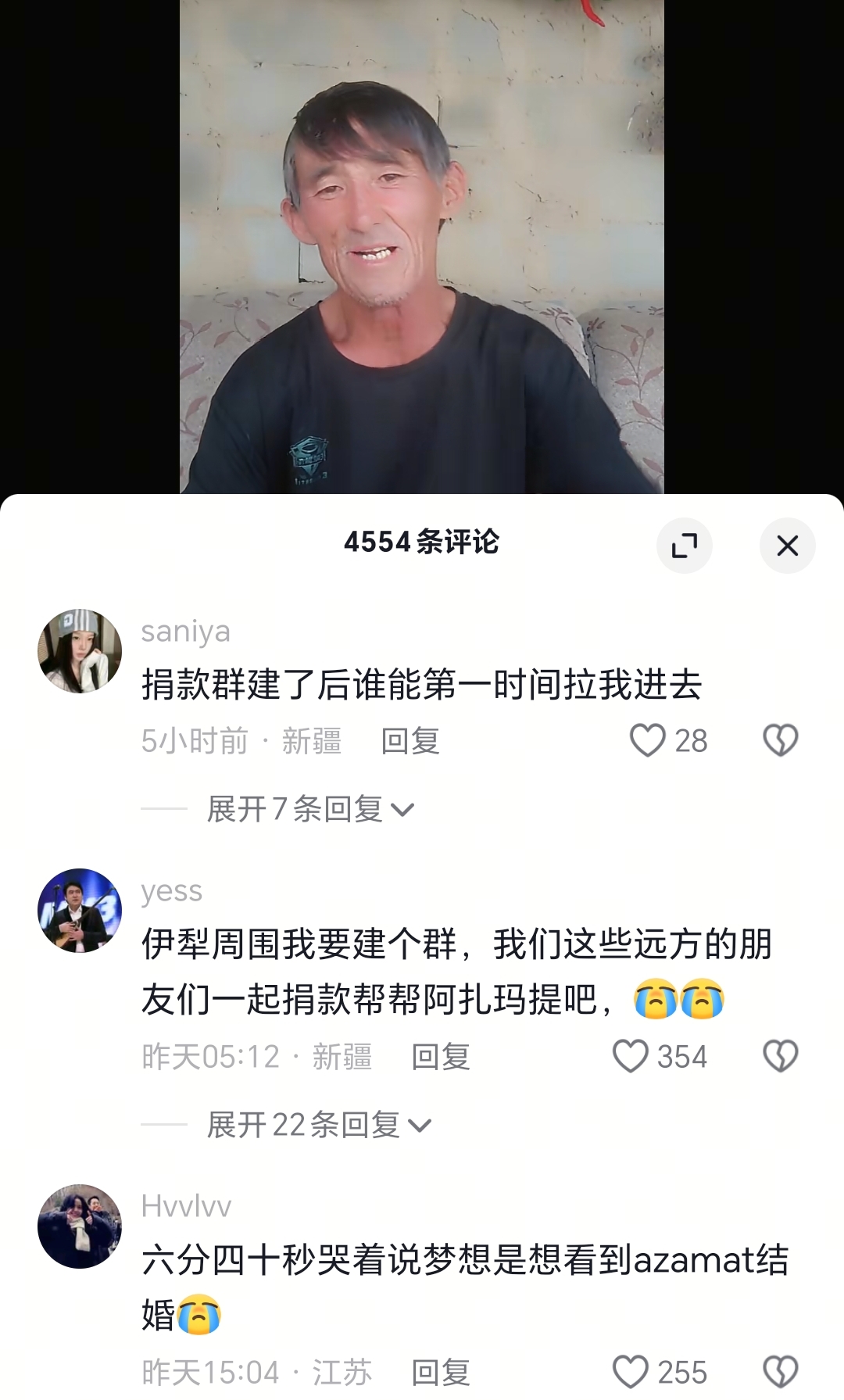 网友表示,他们要替木大哥养大阿扎马提。因为十几岁的孩子,不能让他寄养在别人家。丝要帮助他有尊严的活着,因为再有三四年,阿扎玛提就成年了,他就可以继承他父亲留下的唯一的房子和牧地。