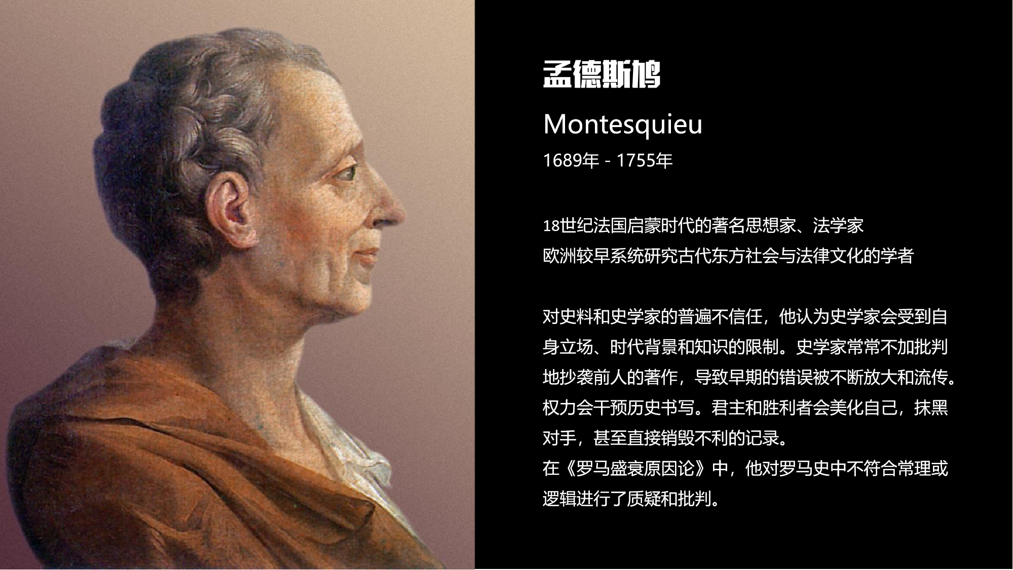 “法兰西思想之王”、“欧洲的良心”、法国启蒙运动的旗手和灵魂人物,伏尔泰,不仅是哲学家、作家、历史学家,更是一位犀利的社会批评家和历史怀疑论者。他也以理性为武器,对当时被广泛接受的西方历史叙事进行了多方面的最为深刻的质疑和最为猛烈的批判。他在《风俗论》中,全面否定了中世纪的历史,认为中世纪早期(特别是法兰克时期)的历史著作 “赤裸裸的谎言比比皆是”,许多记载中的围攻和战斗其实发生在并不存在的城市和堡垒上。