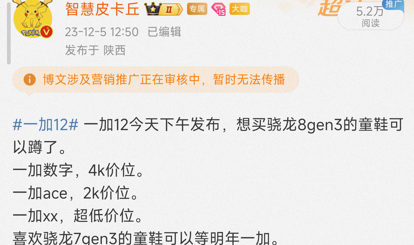 #一加ace3# 一加ace3开始预热了,1.5k东方屏,家族设计,骁龙8gen2,5500mah+100w,50mp+8+2。