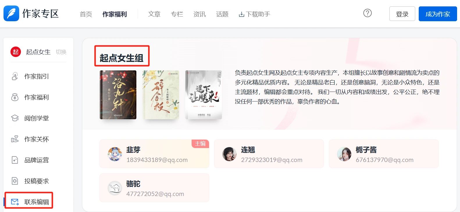 网文编辑 小说编辑 阅文集团 阅文 起点女生 起点女生网 投稿平台