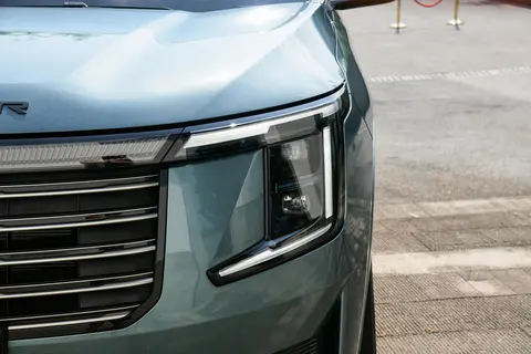 车身线条没有刻意追求锋利,反而用饱满的曲面勾勒出厚重感。前脸的格栅用了横向镀铬饰条与LED灯组贯穿,既保留了传统SUV的大气,又添了几分精致。转到侧面,4810 * 1930 * 1705mm的车身尺寸搭配2820mm轴距,把B级SUV的修长感拿捏得恰到好处,远看像台更贵的中大型车。车尾设计同样规整,尾灯造型与前脸呼应,底部的双边排气布局虽为装饰,却给稳重的基调添了丝力量感。