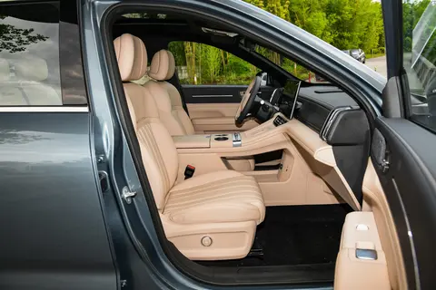 底盘调校更是“隐形加分项”。云台底盘配CDC电磁悬挂,5颗姿态传感器+4个智能电磁阀+1颗控制器,响应速度10ms,每秒调节100次阻尼。起步不抬头、刹车不点头,过弯侧倾小,过减速带像压过棉花。底盘26处减震衬套里,80mm大直径衬套把细碎震动过滤得干干净净,老人孩子坐久了也不晕车。600kg承载能力,满员满载也稳当。