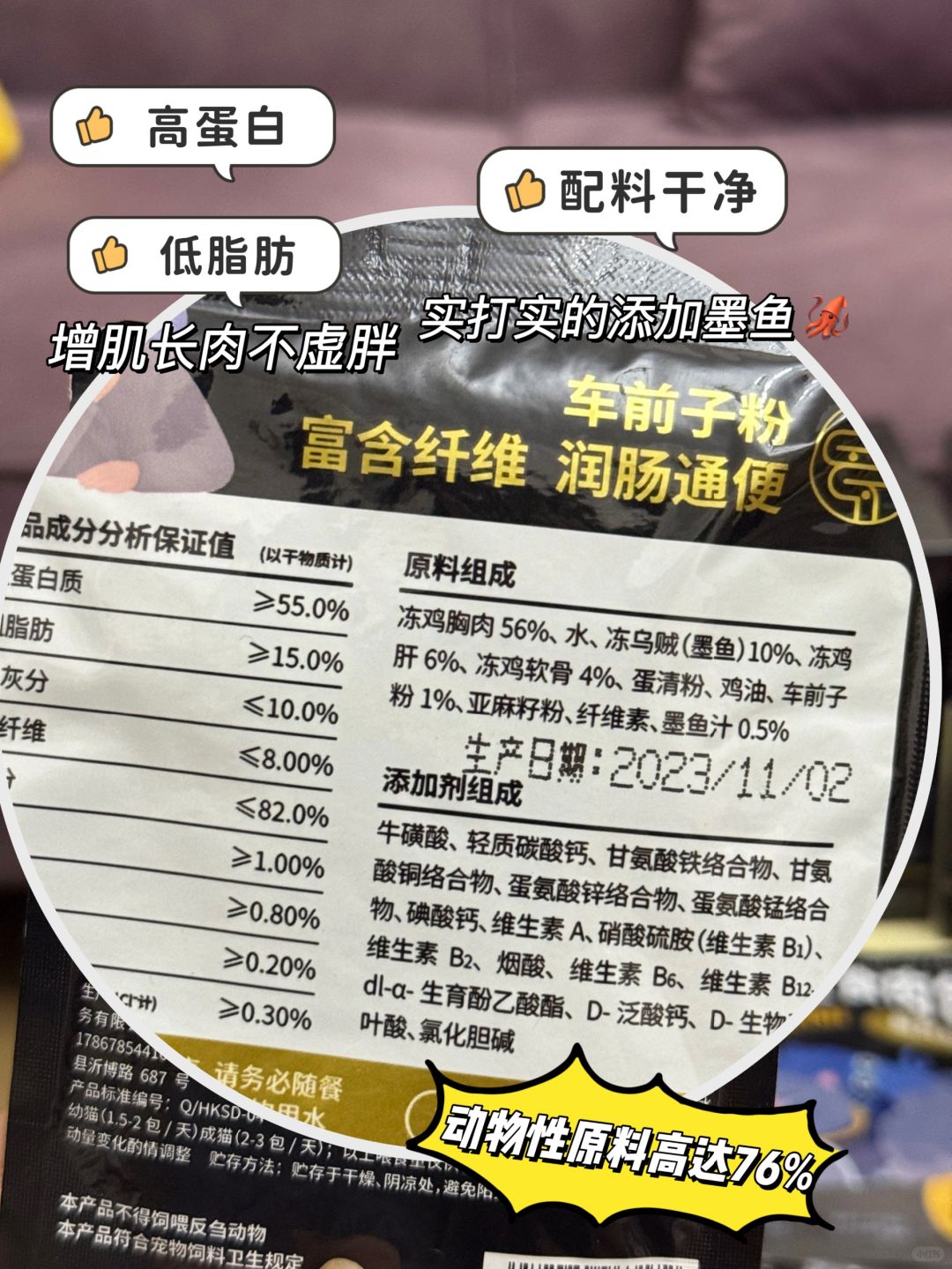 🌱配料表以及原料来源清晰透明,每批次猫粮分批送检,官网公开透明随时可查,入口的东西,姐妹们一定要睁大眼睛仔细挑选。平均一包几块钱的价格就能满足猫咪一餐的营养来源!喂食更方便。