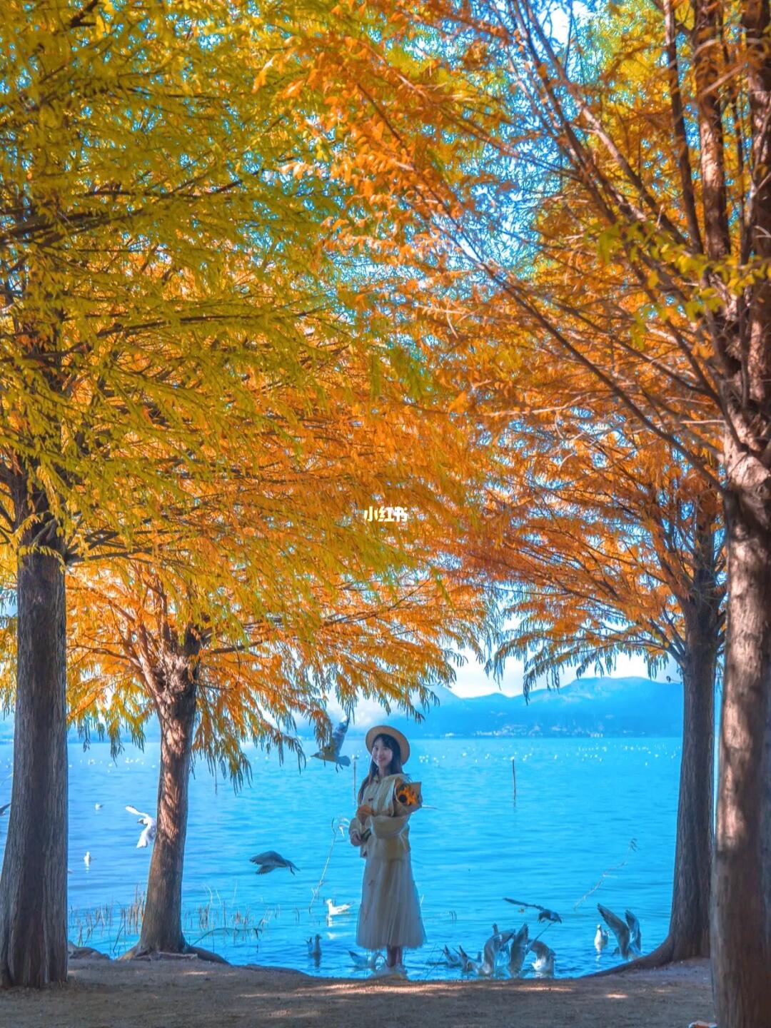 这里有成片整齐的水中红杉,特别是在落日余晖下闪闪发光,也是一个看海鸥的好去处,灵动的海鸥在天空尽情的翱翔,让冬日里滇池成为耀眼的暖色