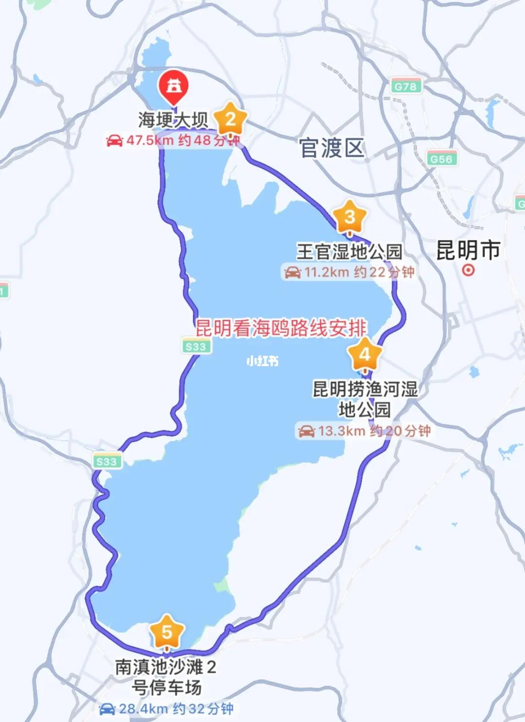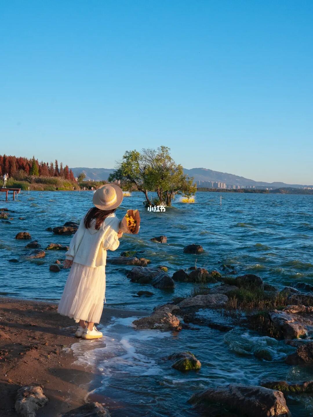 导航【南滇池沙滩公园停车场】,因其外形酷似一条鲸鱼,所以他有一个好听的名字“鲸鱼岛”也是看海鸥的好地方,旁边还有一排美丽的红杉拍照很出片