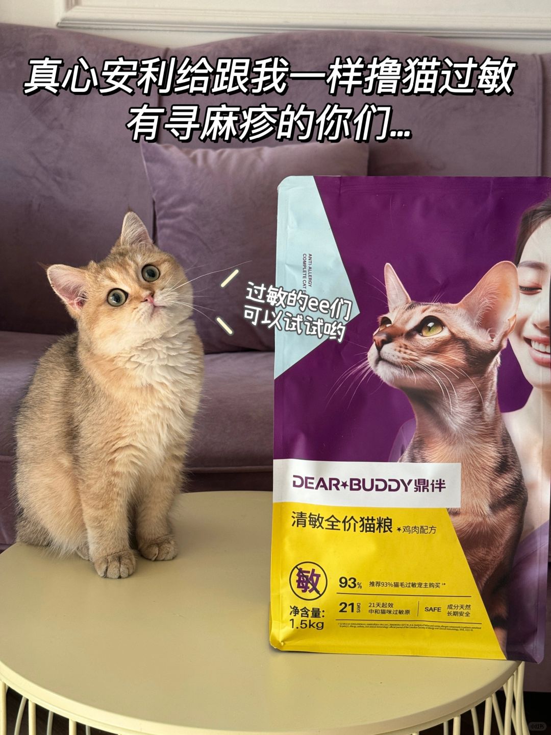最开始我也有轻微的过敏症状出现,仔细研究后发现了🙋鼎伴清敏猫粮,养猫撸猫两不误!