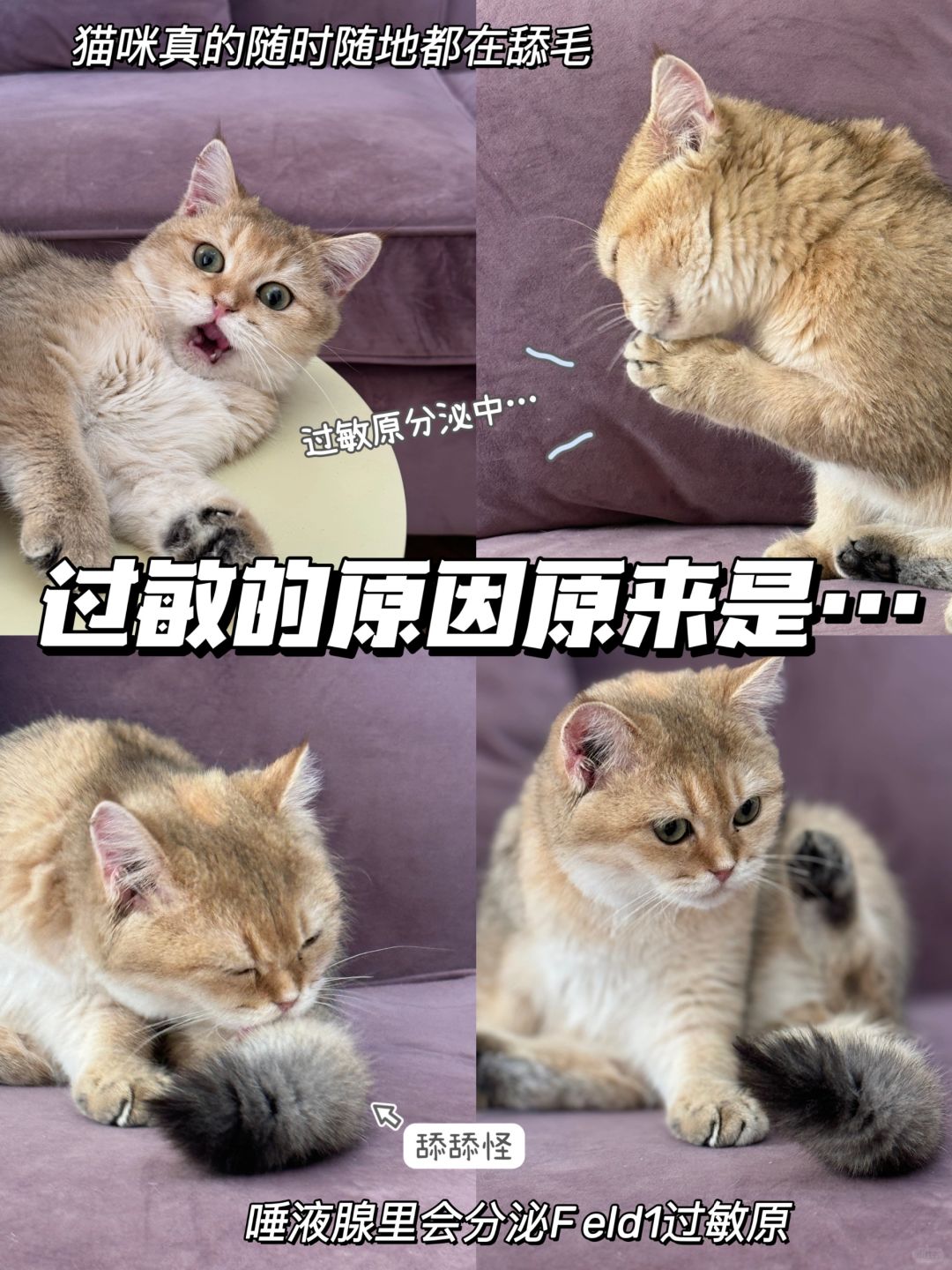 💥“对猫咪过敏的主要原因是猫毛”真的是一大谣言!真正的过敏原是猫咪存在一种十分罕见的fel d1和fel d4致敏物质,主要分布在猫咪唾液当中,平时猫咪舔舐过程中就会分布到全身,对于fel d1和fel d4过敏的人在拥抱/抚摸猫咪的过程中就会引起过敏的情况。