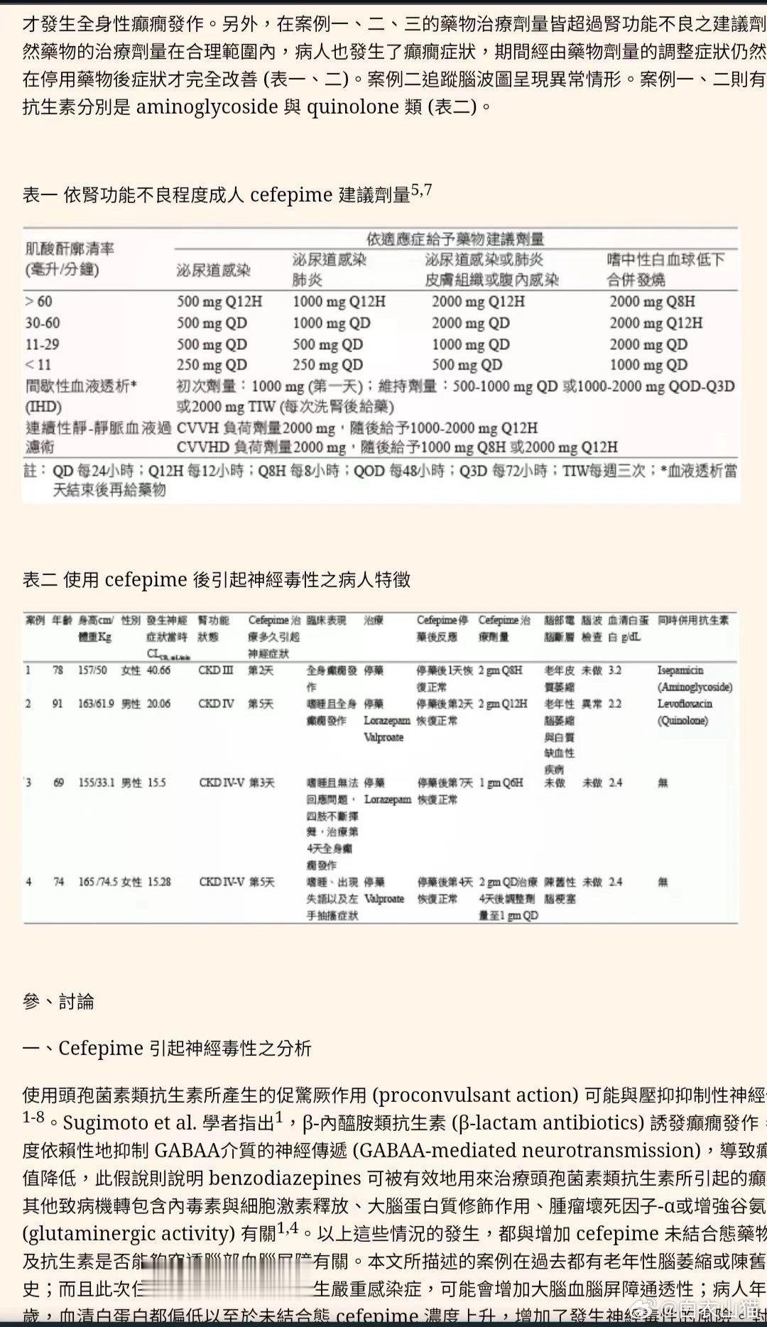 这些年,陆陆续续有一些头孢吡肟导致嗜睡和神志不清的病例报道,最近,有关此内容的综述也有人写出来了。