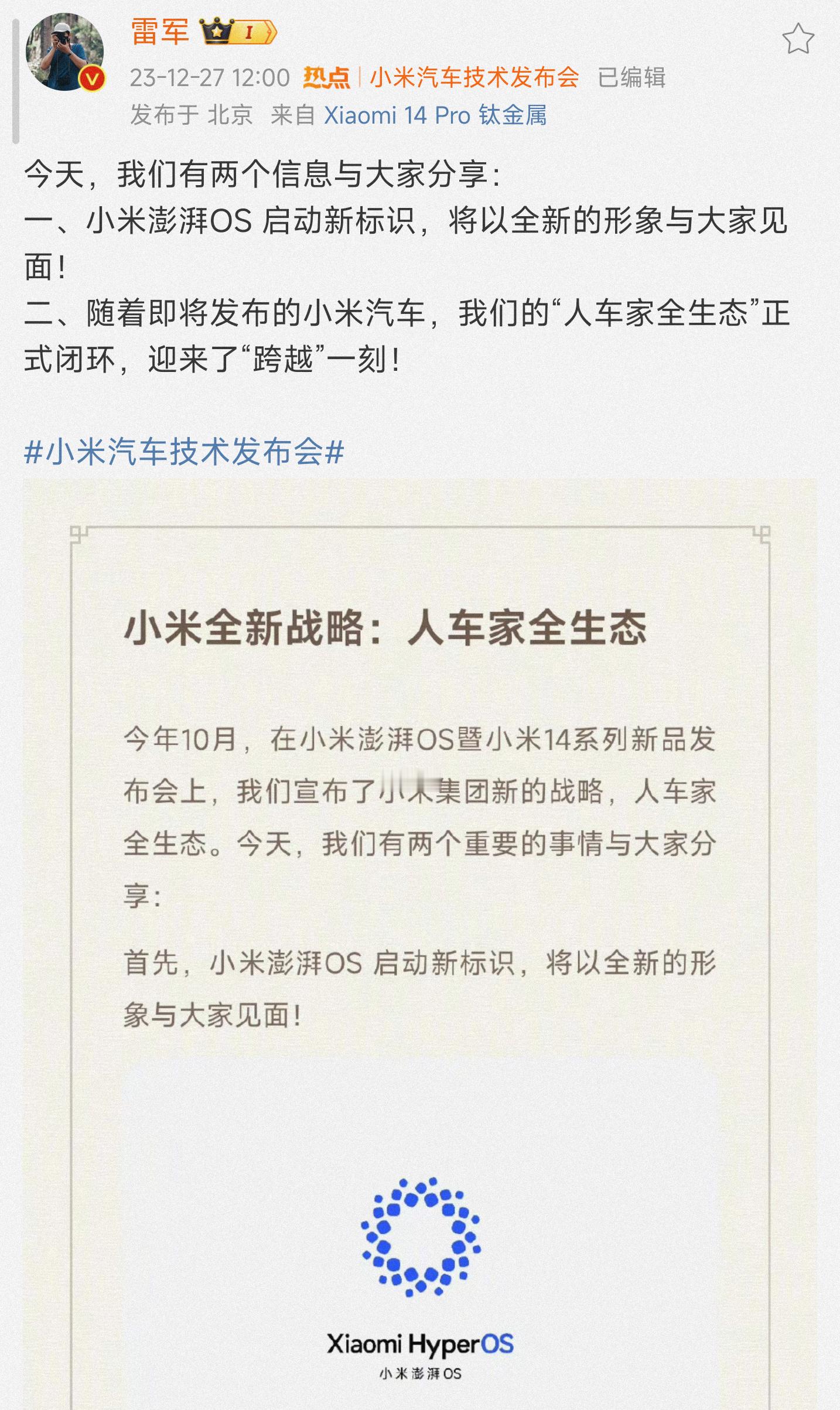 #小米澎湃OS新logo# 之前小米logo进行了改进,这次澎湃os的logo也进行了改进,“星系迸发”,澎湃宇宙,大家觉得如何。