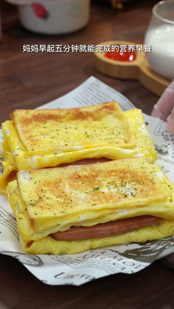 做出来的鸡蛋火腿三明治,外皮金黄酥脆,里面咸香软糯。孩子一口一个,早餐都不剩。比单独煎鸡蛋还香,还更省时间,一锅就能全搞定。