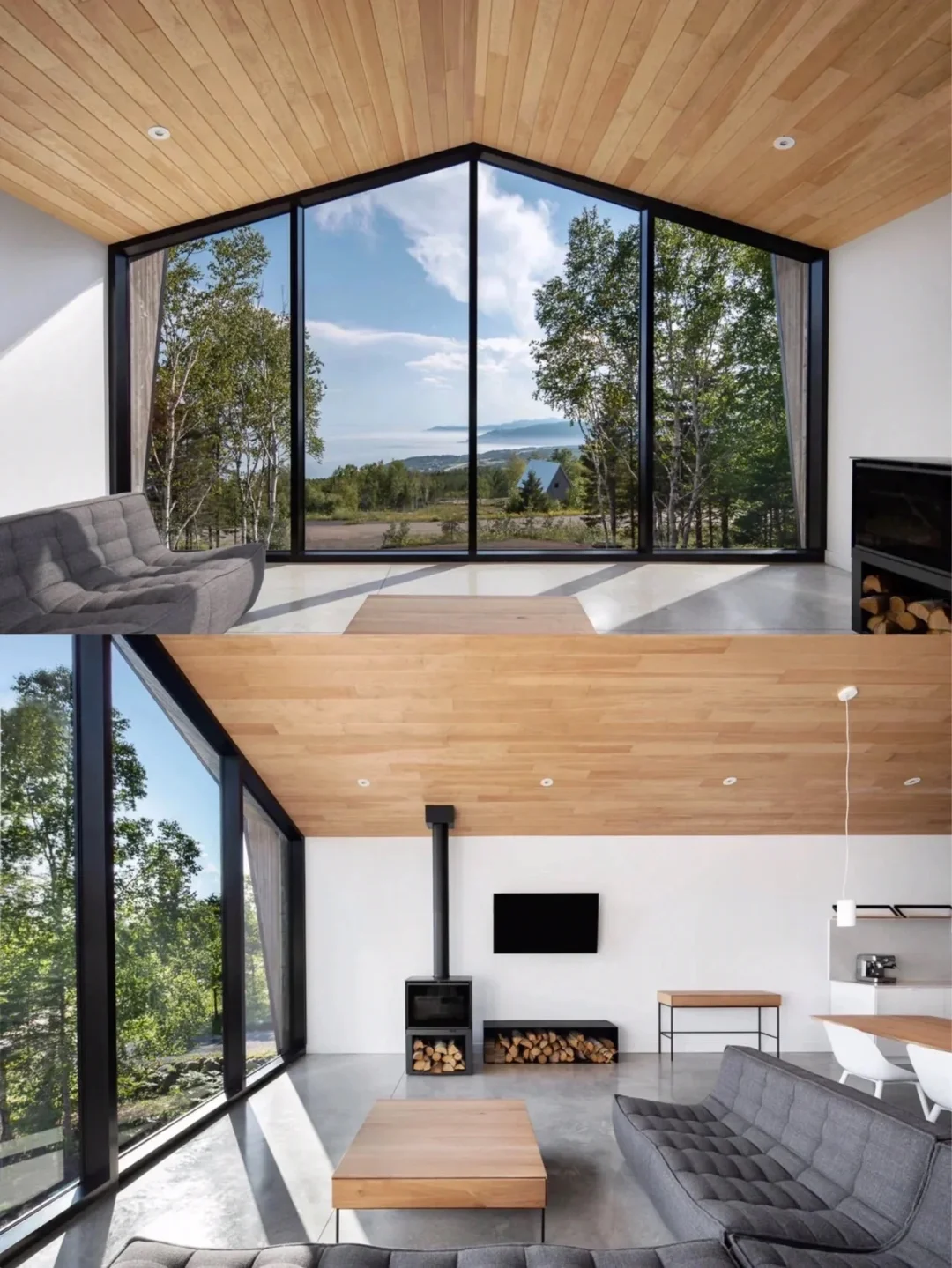 ▫️度假木屋坐落于魁北克省夏尔沃瓦( Charlevoix )的Cap-à l 'Aigle ,坐拥圣罗兰河( St-Laurent River )和拉马尔贝湾( La Malbaie )的壮丽景色