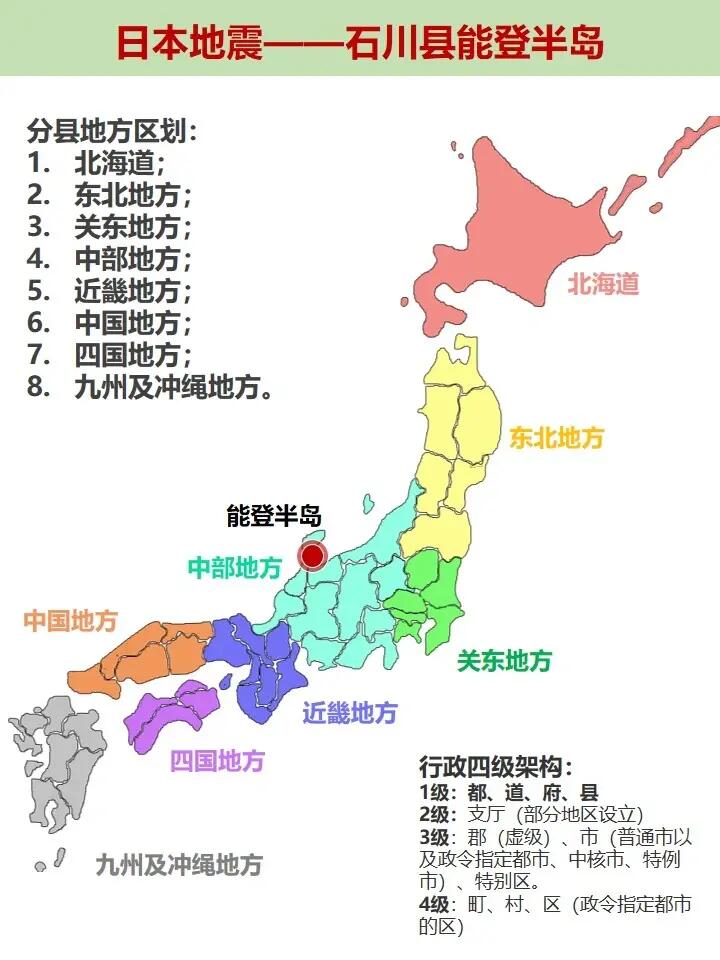 日本地震啦,会不会波及我们?[暗中观察R] 🌒 日本7.4级地震,震惊之余,赶紧研究一下位置。 🍃 震中:日本西海岸,石川县能登半岛。 🍃 大区域:与大阪,东京地区直线距离320公里左右,应该有震感。 🍃 石川县:地广人稀,尤其震中区域,树比人多。 🍃 对我国🇨🇳:震中向西,距离朝仙东海岸660公里,再加朝仙半岛保护,我国不会受影响。 🍃 核电站:150公里半径内,6⃣座核电站,有停产的,有在用的。350公里半径,涵盖太多,路过影响微乎其微了。 日本行政区划🇯🇵两个有意思的点: 1⃣九大分区,其中之一叫中国地方👀,是不是自古就是我们滴: 2⃣他们的县等于我们的省,别搞错了哦,亲们。 他们的顺序:➡️县—市—町—村 🍃自然灾害,受伤的都是老百姓,不分国度,愿一切安好。 🌱 我是恬小雨,感谢关注!