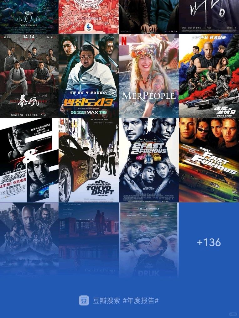 2023年共计看了136部电影(犯罪和动作题材较多),花费了273个小时。