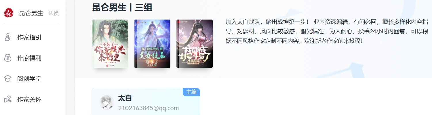 网文编辑 小说编辑 昆仑中文网 小说编辑投稿 网文编辑收稿