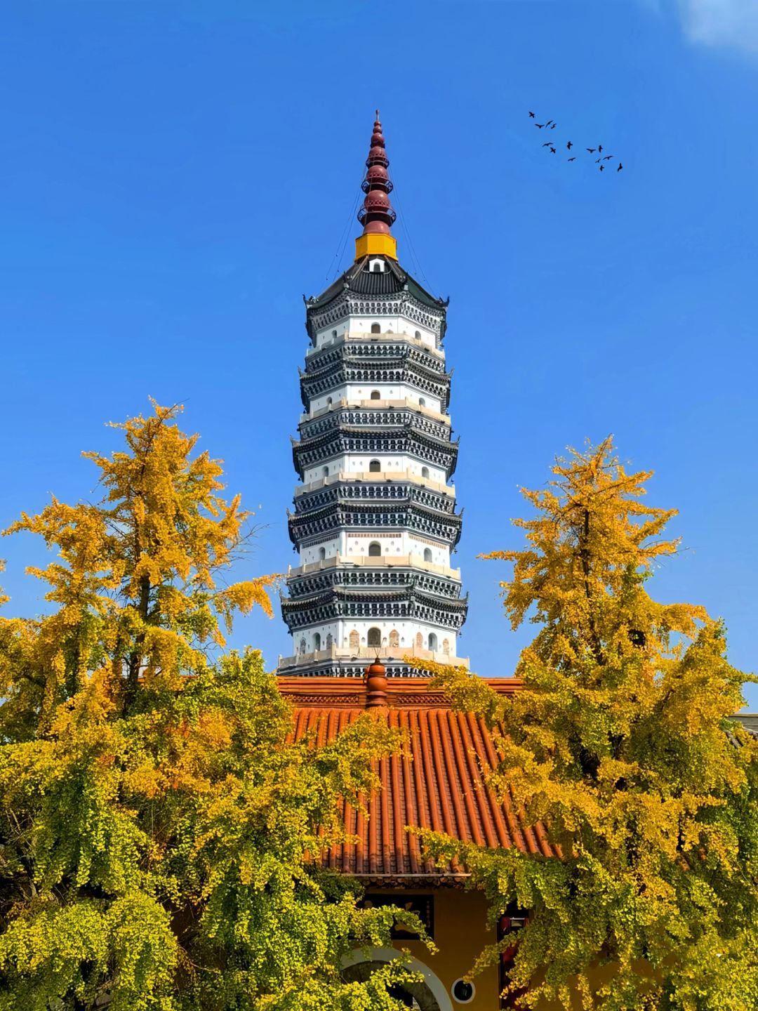 👉振风塔:万里长江第一塔,有过了安庆不看塔之说,因振新安庆文脉修建,是祈福的好去处,寺庙门口银杏开放,真的超美