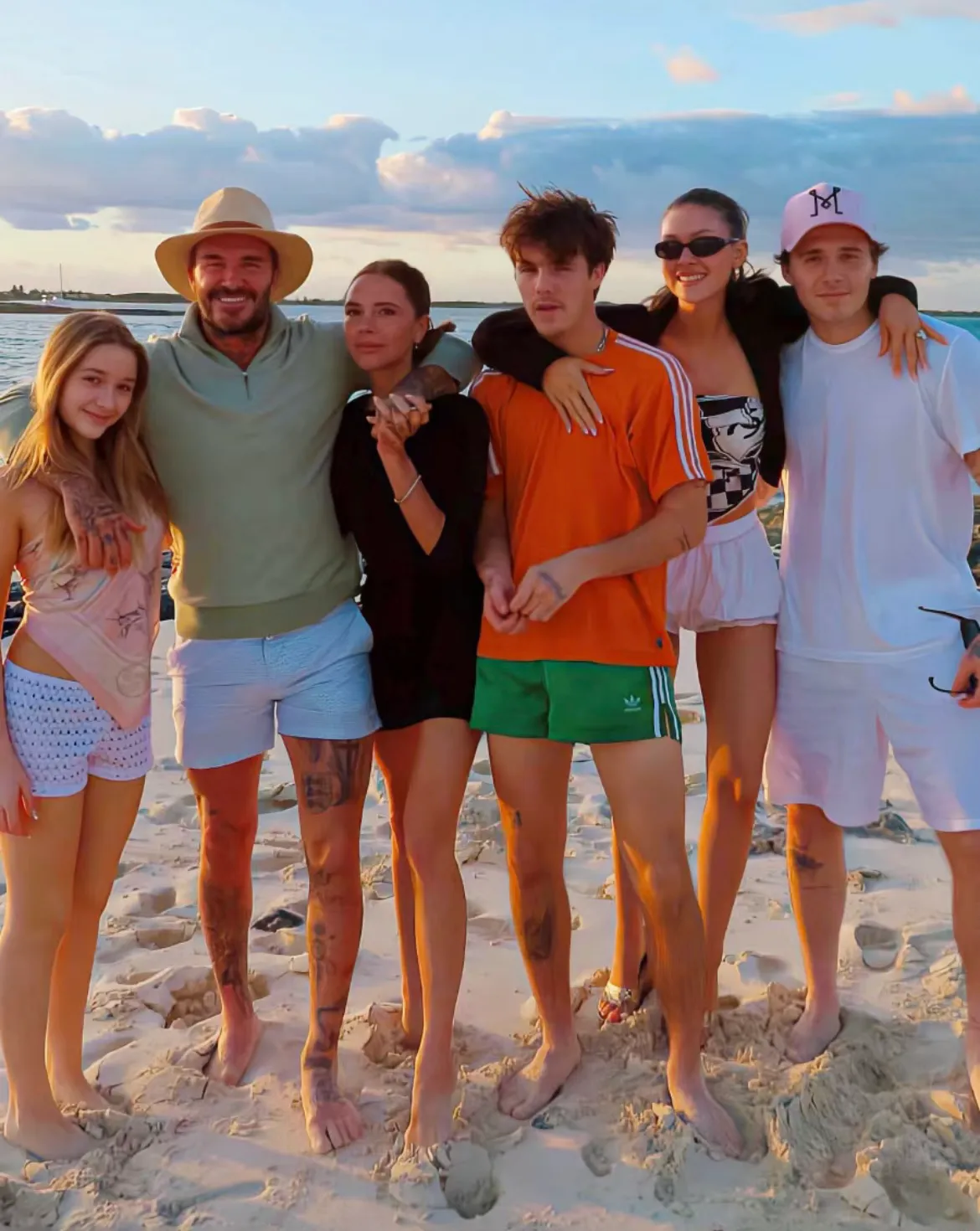 贝克汉姆一家巴哈马度假,站C位的小七好漂亮,金发碧眼白皮肤瘦下来更美了。
