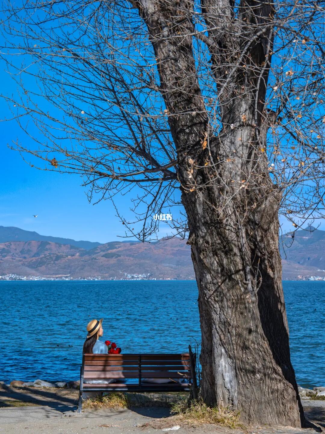 拍照巨出片,沿着洱海边的生态廊道随便拍都美,这里还有几颗我很喜欢的树,有浪漫的树,孤独的树,歪脖子树都在这里超出片,坐在椅子下,桥洞里拍照氛围拉满,喜欢摄影的姐妹一定不要错过了