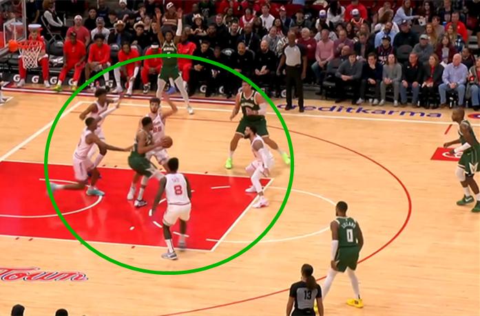 火箭防守字母哥,重现经典BOX-1! 北京时间1月7日,火箭与雄鹿的比赛来到首节6分40秒,全队对字母哥的防守,重现经典的BOX-1战术,将字母哥装在盒子当中。 图一:比赛一开始,字母哥先是一个反击,随后如图所示,右侧低位单打小史密斯,无解。 图二:为了遏制字母哥的发挥,火箭先是让申京予以夹击,迫使字母哥交出球权;而这次进攻,更是用出经典的BOX-1,字母哥依旧是背打史密斯,来到油漆区刚转身,火箭五人将他围在中央,迫使他必须交出球员,太经典了。 图三:将画面定格,看得更清晰,字母哥被火箭完全装在盒子中心了,哈哈。