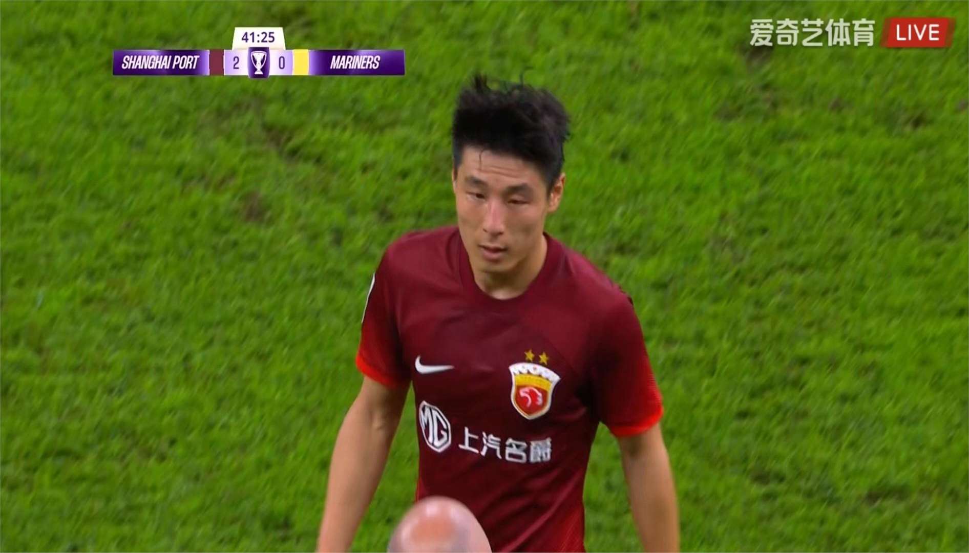 第40分钟,上港队在右侧边路策动进攻,王燊超倒三角传中,奥斯卡中路倒地送出助攻,武磊后点打空门轻松得手。上半场结束前,凭借着武磊的一传一射,上港队将比分扩大为2-0。