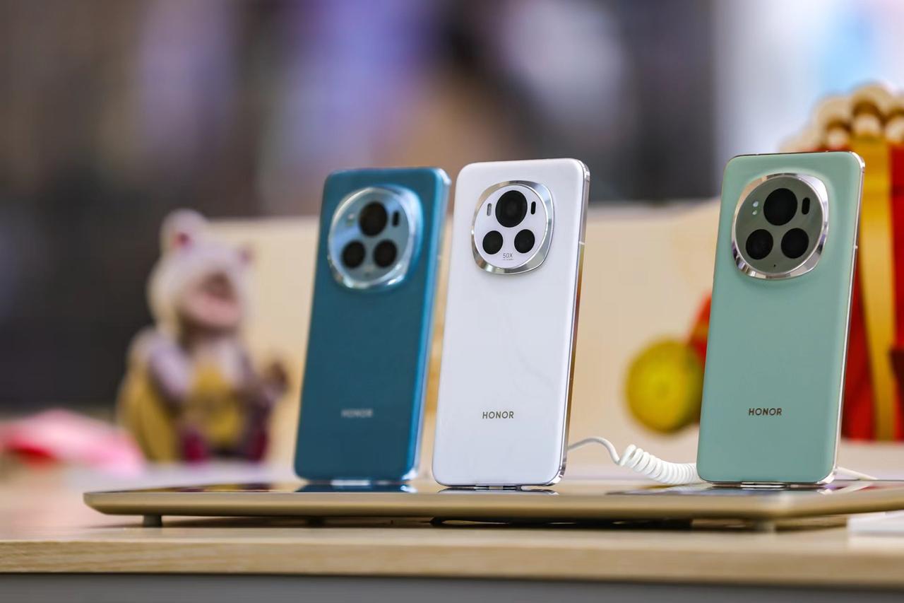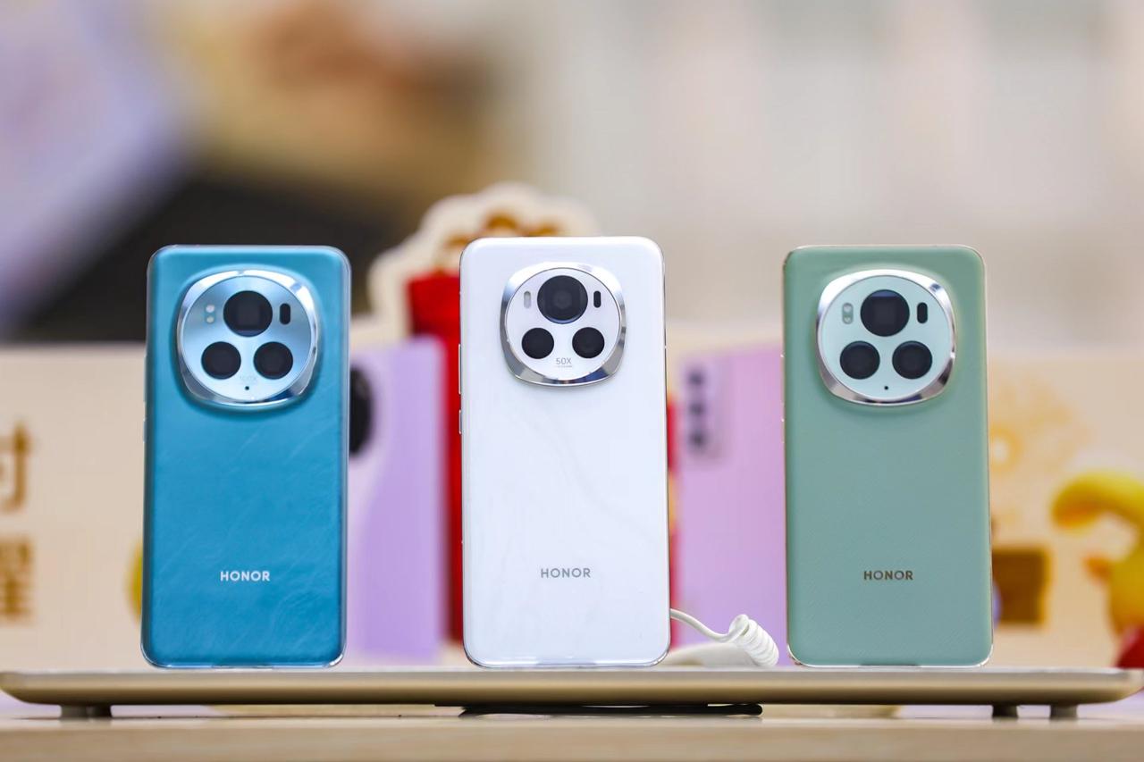 荣耀Magic6系列的五款配色全部到位了,除了绒黑色,流云紫、海湖青、祁连白、麦浪绿四款配色都非常有看点,全部颜值在线。这些配色的机模已经到店,从照片上看,比渲染图要好看,那么真机也肯定是更好看的,加上摄像头模组部分采用枕形设计,荣耀这波设计有点吸粉啊! 你喜欢吗?