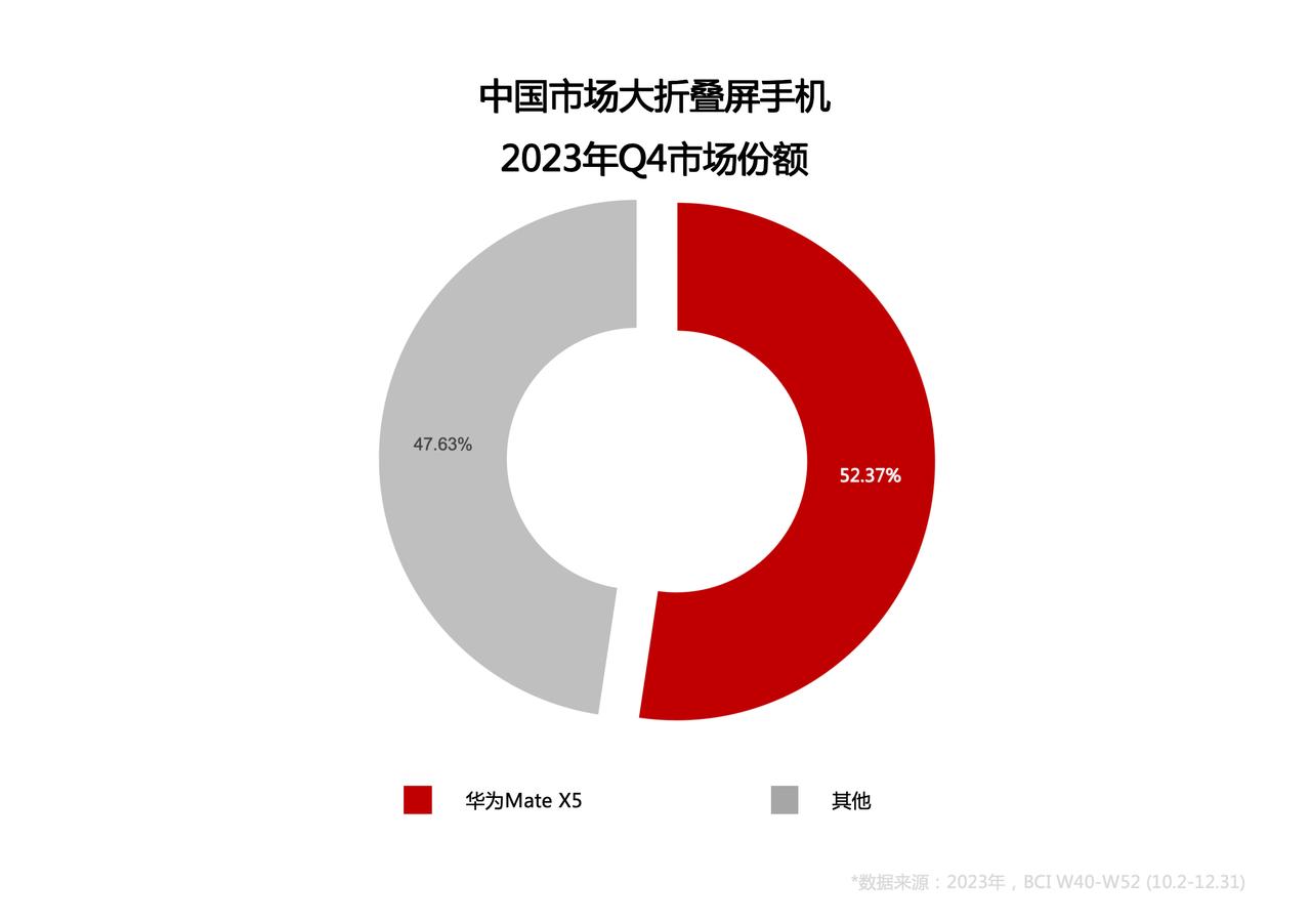 作为颜粉,华为Mate X5的手机配色真的是太让我心动了。每个颜色彰显的格调和品味是不同的。幻影紫代表着未知、探索与想象,给人以无穷无尽的遐想。青山黛优雅浓郁又不失生机,大气而不浮夸。羽砂金呈现出静谧简约的质感。羽砂黑、羽砂白经典色,自带高端质感。除了丰富的机身配色之外,华为Mate X5还配有微泵液冷壳、多向支架系列保护壳等丰富多样的官方配件。#华为折叠屏2023年Q4销量第一# 而消费者欣赏的不仅仅时尚的外观,还有华为领先的研发实力。业界独创的四曲折叠机身、玄武钢化昆仑玻璃、灵犀通信+双向卫星通信技术,这些都是直击手机用户的痛点,使得消费者对手机的安全性、可靠性都称赞不已。 2023年第四季度,数据咨询公司的数据显示,折叠屏市场销量中,华为折叠屏已经占据了一半以上。而且华为Mate X5在国内万元以上的超高端市场占比为三成,牢牢占据了国内超高端市场的领先地位。这样的数据其实就是市场对华为的认可,也是华为深耕科技和用户体验的最好表现。#华为折叠屏国内销量蝉联第一#