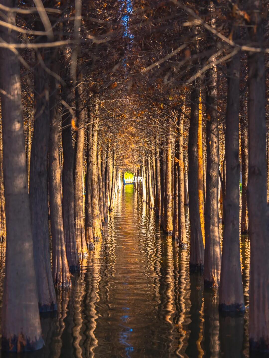 这里有冬日里最美的秋色,成片的水中云杉整齐的矗立着