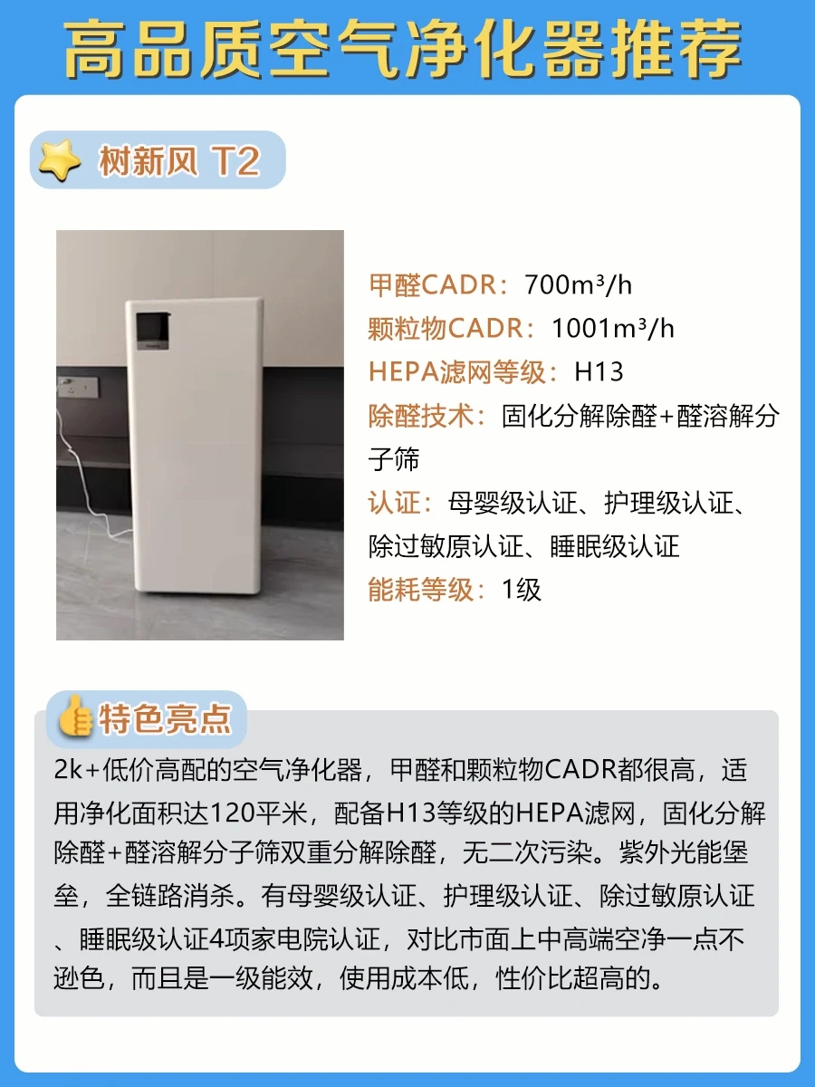 ✨推荐4款2-7k+价位高品质空气净化器给大家(图7-10),其中我更喜欢树新风 T2。