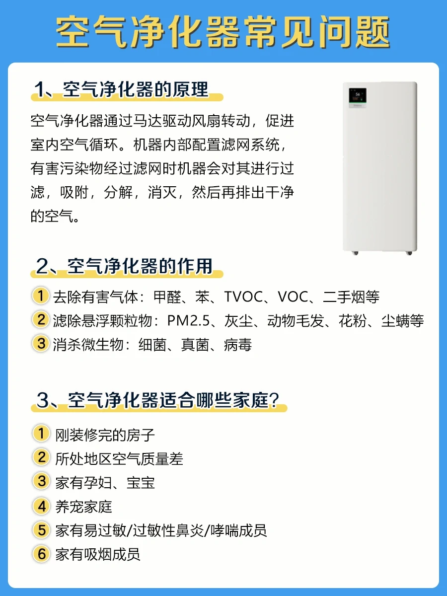 刚装修完的房子、所处地区空气质量差、家有孕妇和宝宝、养宠家庭、家有易过敏/过敏性鼻炎/哮喘成员、家有吸烟成员,真的太有必要入手一台空气净化器啦~