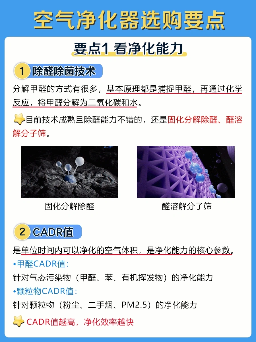2️⃣CADR值是单位时间内可以净化的空气体积,是净化能力的核心参数。CADR值越高,净化效率越快