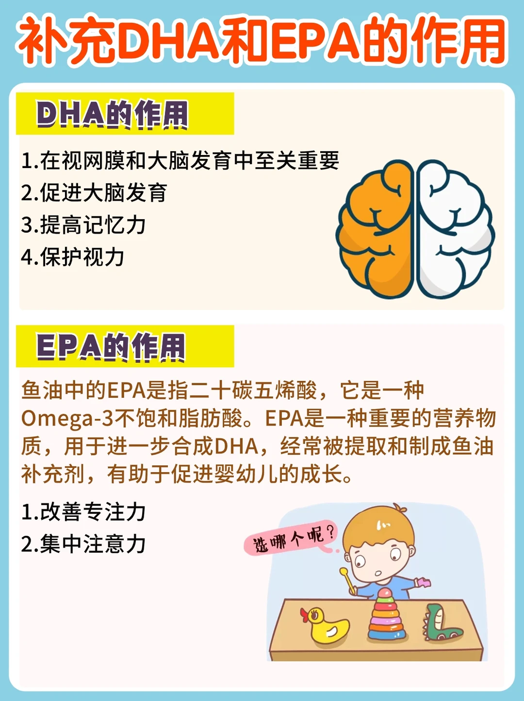 鱼油是一种膳食补充刻,主要成分是omega-3,由EPA和DHA组成,EPA可以孩子的提升专注力,集中注意力、提高免疫力,DHA则对孩子大脑和视力发育至关重要。但由于人体自身无法合成和长期储存omega-3,所以补充鱼油就是一个很好的选择。