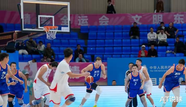 四川队是本次全运会男篮夺冠大热门,当地部门直接将CBA科冠军球队浙江稠州队员几乎打包过来,又以600万的工资将周琦从辽宁男篮手里抢了过来,组成了国产最强内线双塔。在这次比赛开始之前,四川带来一场未败,周琦和胡金秋更是统治内线,在上一场对阵北京的比赛中,周琦还拿到了33+14的大号两双。