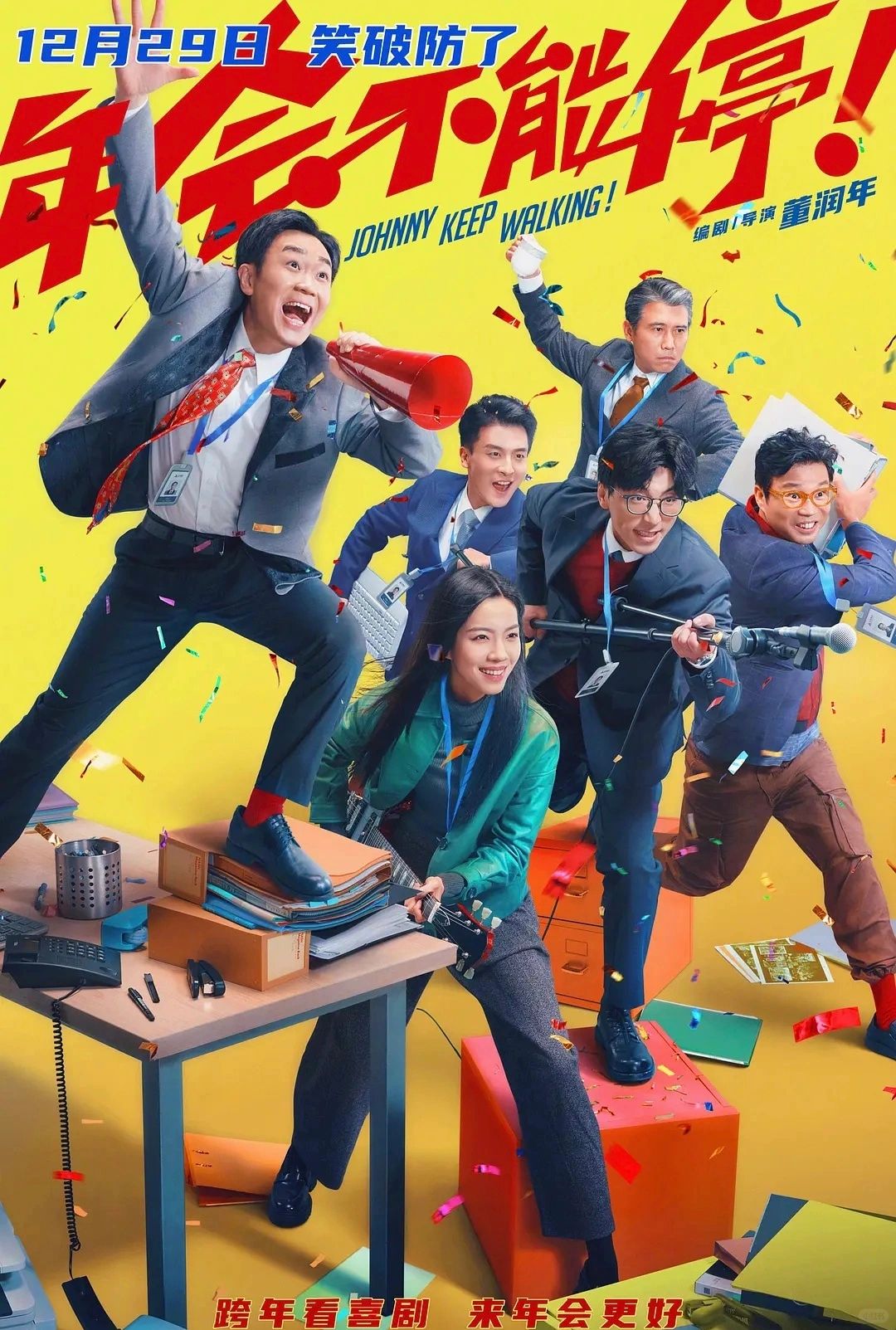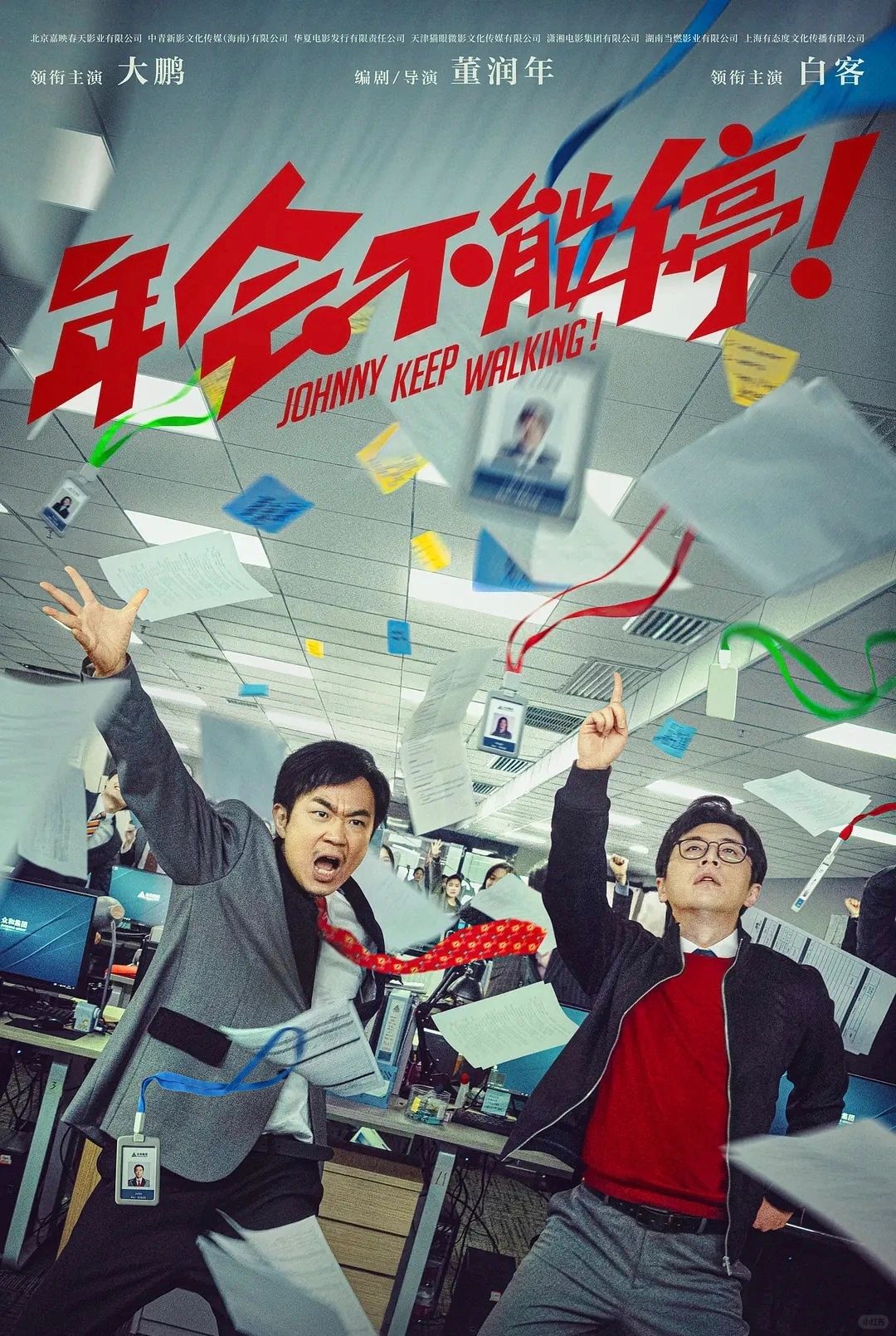 📺影名:年会不能停(2023.12.29上映) ✨类型:喜剧 🕰️时长:117分钟 🌈主演:大鹏、白客、孙艺洲、庄达菲、王迅、李乃文 ✅真的无愧于高分,这部电影不仅把工人的辛酸泪水和小小的悲伤搬上大银幕,还用一种简单却又非常贴近现实的故事线,一针见血地道出了职场众生相! ✅主要讲述了钳工胡建林(大鹏饰)在集团裁员之际阴差阳错被调入总部,裹挟在“错调”事件中的人事经理马杰(白客饰)为保饭碗被迫为其隐瞒四处周旋。