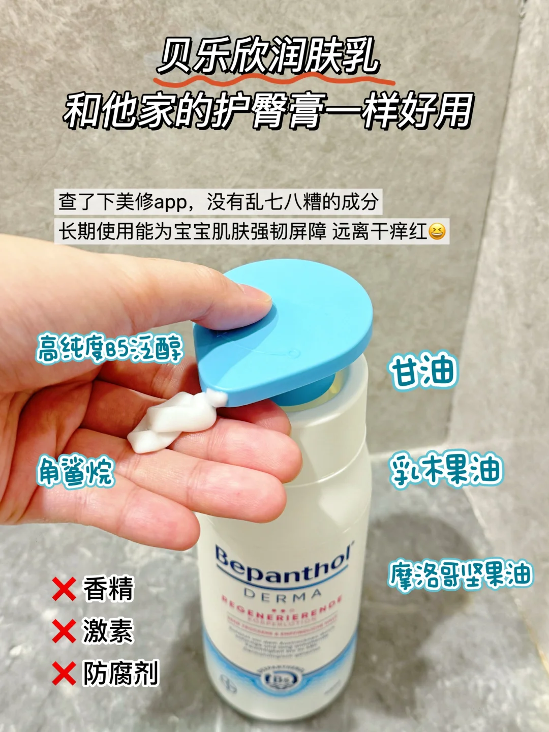 10、身体乳需求量大,买一大瓶的那种,💦贝乐欣润肤乳400ml,可以用很久‼️拜耳家的产品都是闭眼入,之前用的护臀膏就是这个牌子,这个润肤乳更是通过婴幼儿临床试验的,成分这一块也是很干净,美修全绿[赞R]