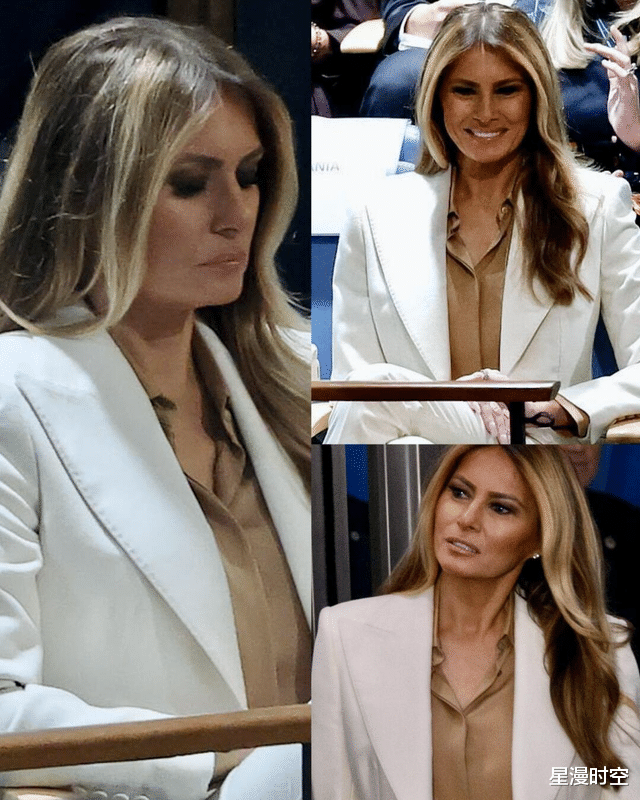 此外,梅姐对丈夫的态度,感觉也来了个180度的大转弯——丈夫演讲,梅拉尼娅全程微笑注视,眼神里满是崇拜、骄傲和自豪,这般深情都快赶上西班牙王后的“望夫眼”了,哈哈~