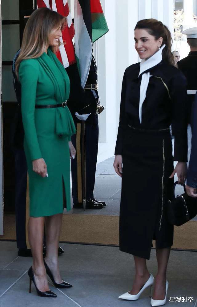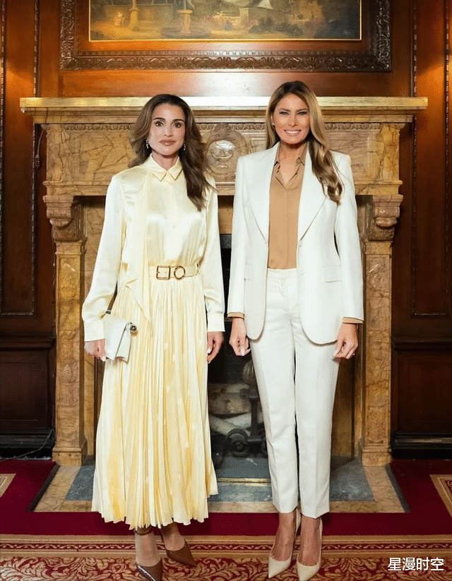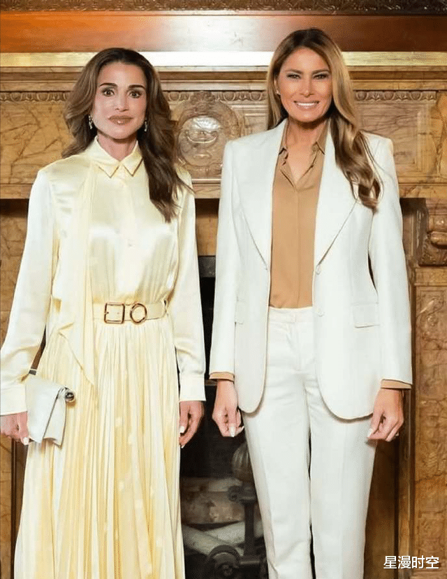 前脚与卡米拉、凯特同完框,后脚回美的梅拉尼娅,这次又与拉尼娅王后,同上框了。两位女士站在一起,金光闪闪,气场全开,堪称一场视觉盛宴。