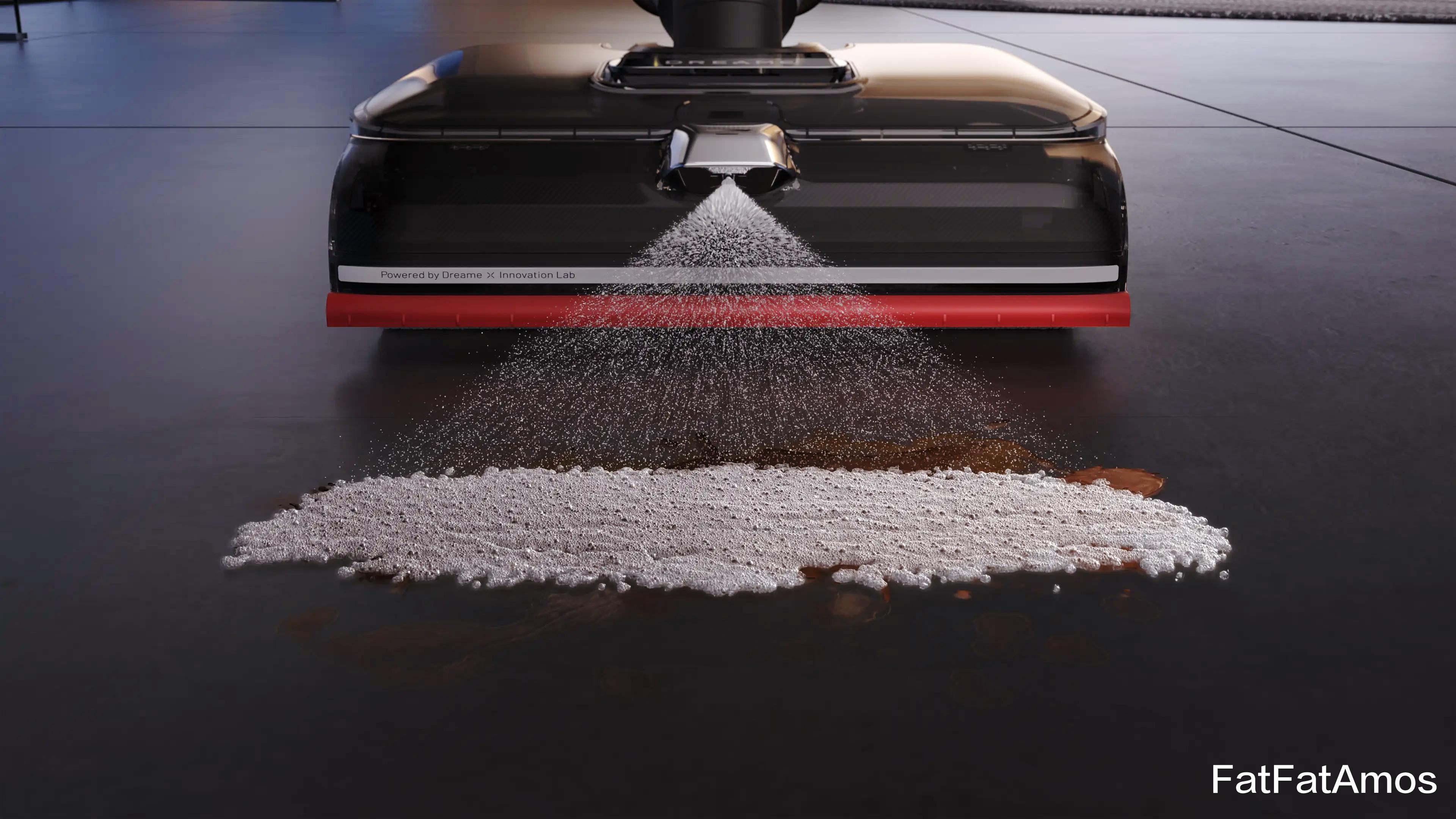 V30 Pro吸尘器所搭载的恒净活水洗地系统2.0,凭借8孔立体喷淋并配合每分钟大概500次的强力刷洗,达成了以洁净来实现洗净。