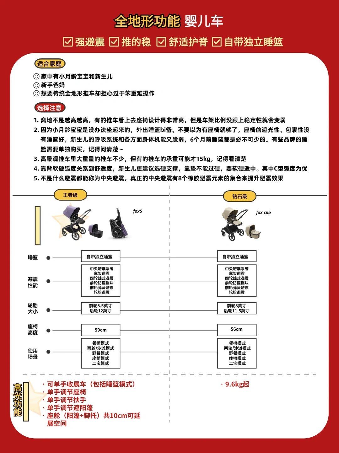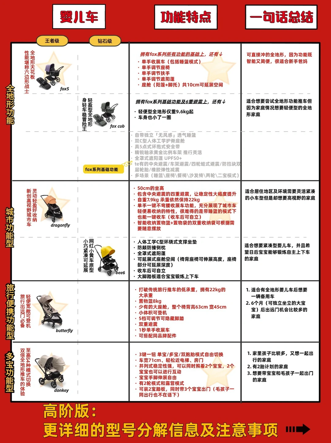🔹大家可以先看图片第一行的总结,再去看参数,选婴儿车其实可以很简单,直接选适合自己的推车种类里的领头羊🐏,那就不会错了[黄金薯R]