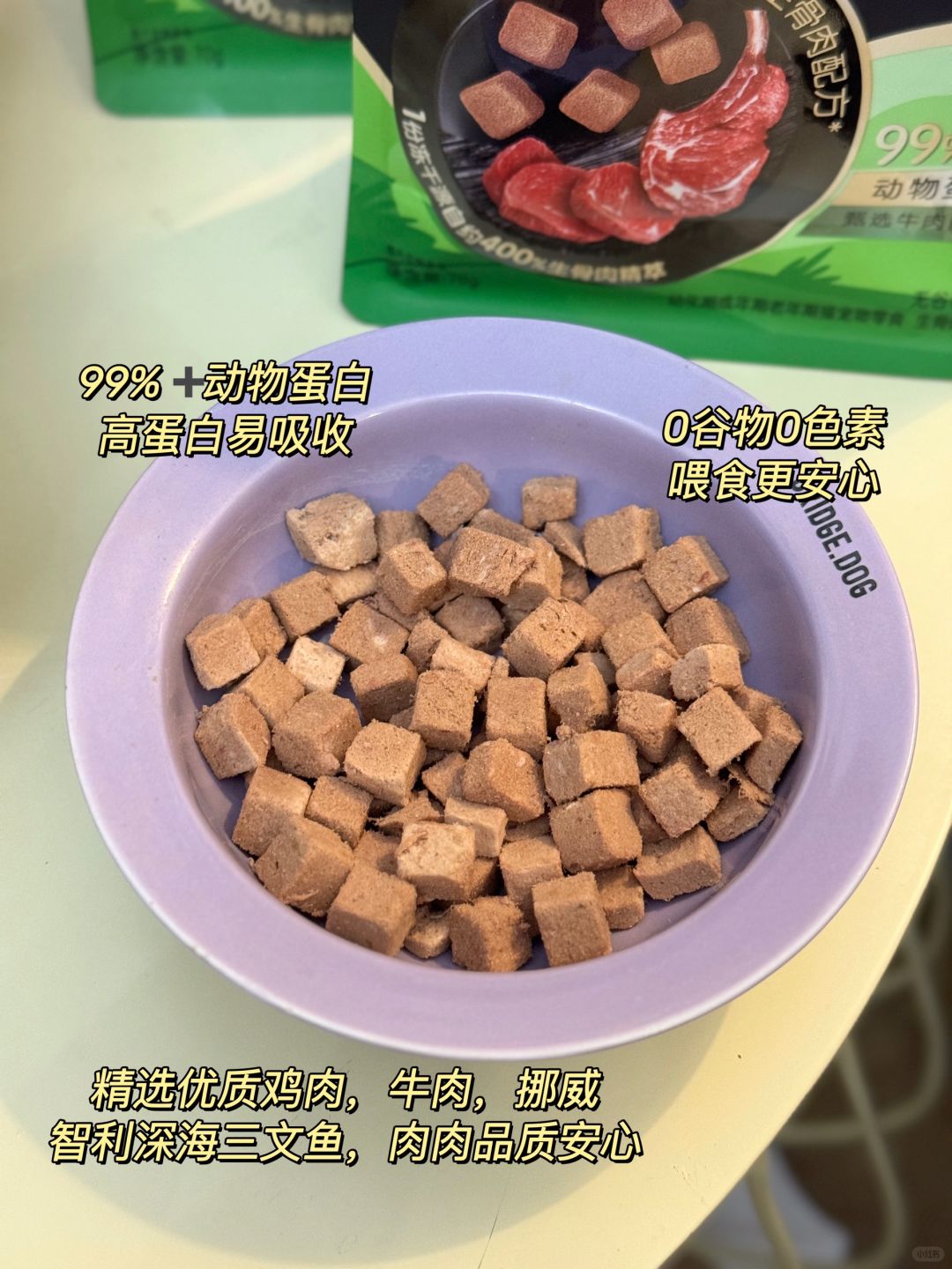 ✅复水也是我非常喜欢的一点,大约3-5分钟就能让冻干吸足水分,不怎么麻烦,而且复水后丝毫不影响食欲,同时还有补水的作用,对毛孩子的泌尿系统有好处。