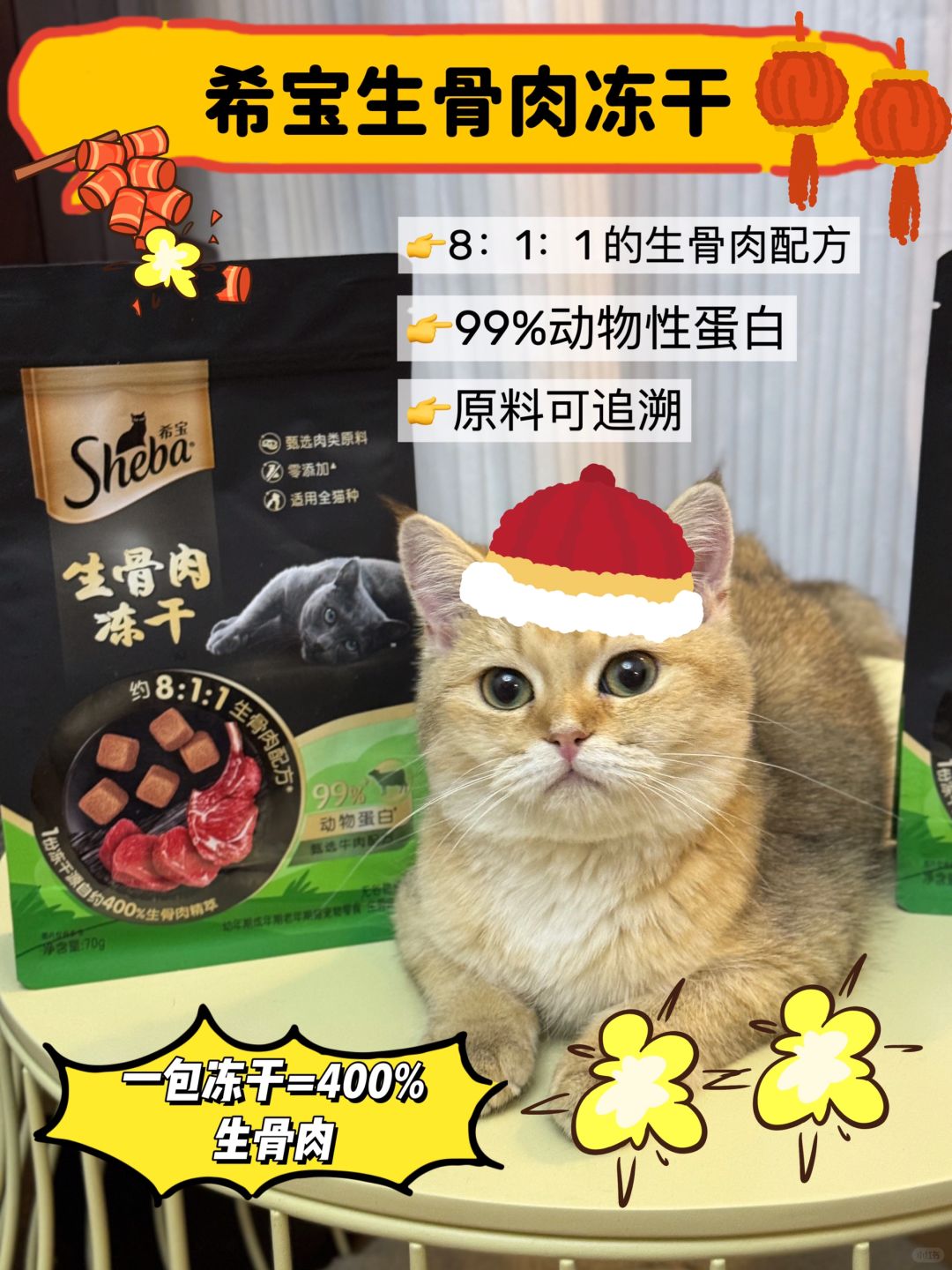 时间过得太快了,马上又要到新年了,每年我都会给我家猫咪选一些爱吃的猫零食,今年也不例外。准备了希宝的生骨肉冻干作为新年礼物 ,给我家猫主子一些小小的新年仪式感!