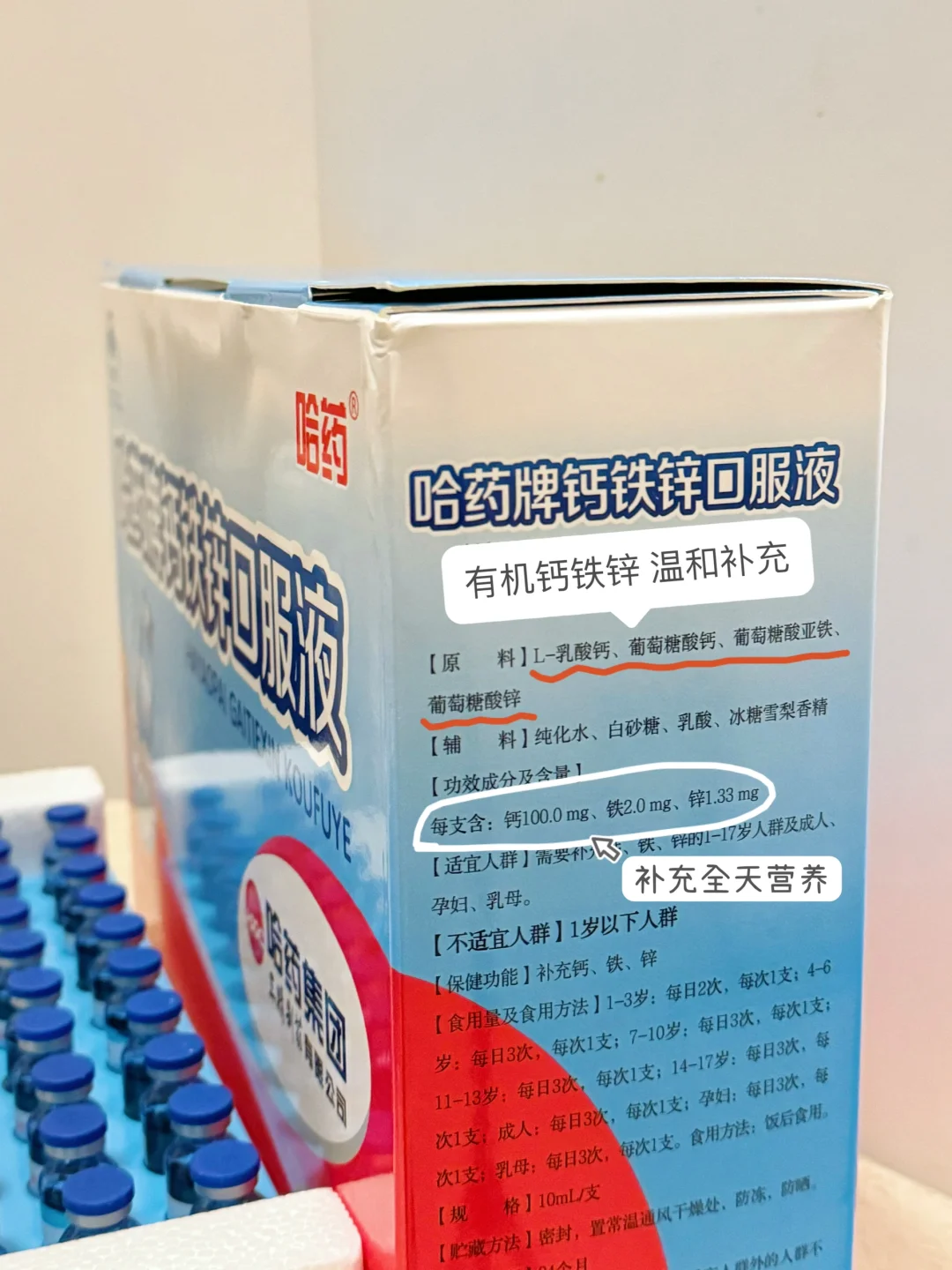 🔹它是100mg钙+2.0mg铁+1.33mg锌的黄金配比,能同时吸收而不会相互干扰,营养吸收一步到位。要知道,如果仅仅是单纯的大剂量钙,宝宝身体反而无法全部吸收‼️关键是酸酸甜甜的果汁味道,我孩子超喜欢喝!每次都提醒我喝,比闹钟还准时哈哈🤣