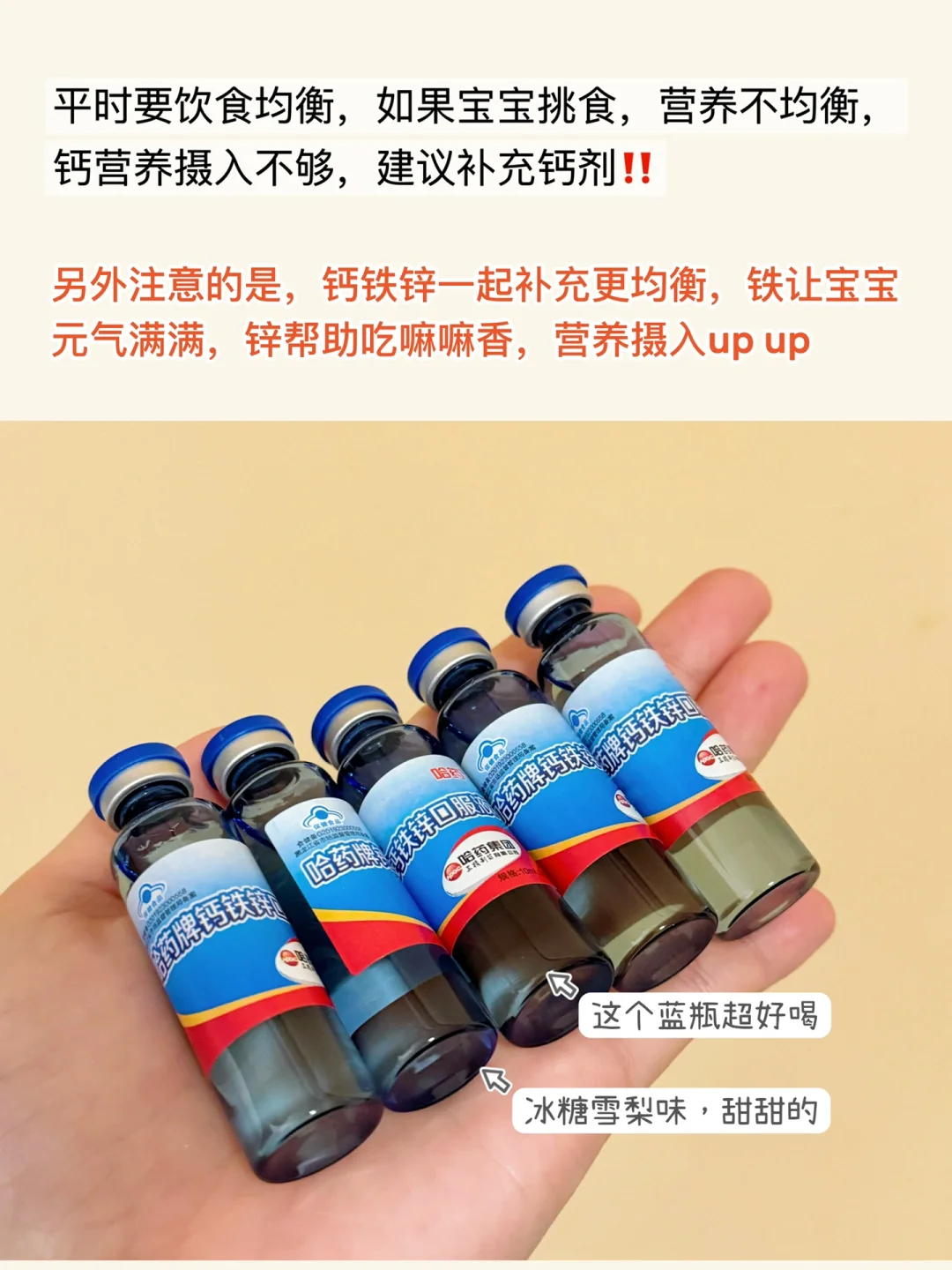 🔹新手妈妈不知道怎么选,可以试试哈药小蓝瓶,这个就很适合1岁的小朋友,有机钙铁锌,很温和,不会刺激肠胃,能更好吸收,而且是钙铁锌3种矿元素同补,比单一的补钙要靠谱的多!