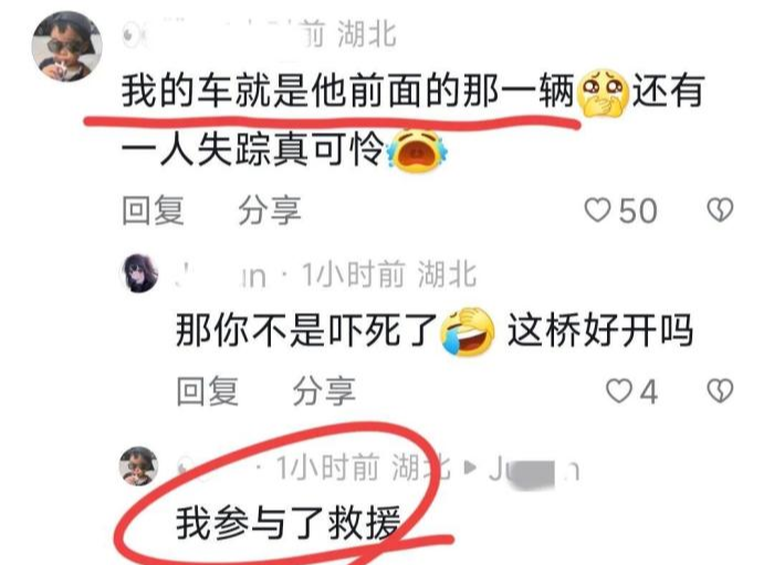 而备受争议的后车司机也澄清说:自己并没有见死不救,开出桥后,他就返回来救人了。