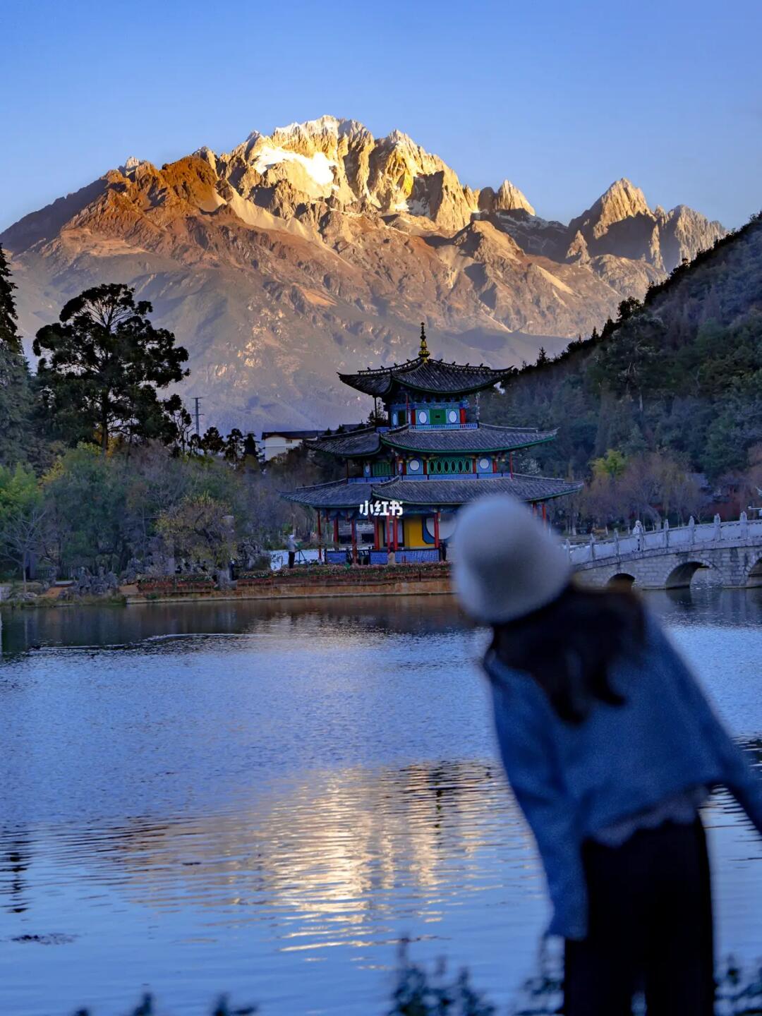 丽江4A景区之一,进去就能看到一处晶莹清澈的潭水,这里依山傍水与古典建筑相映成趣,这里的日照金山更是一绝