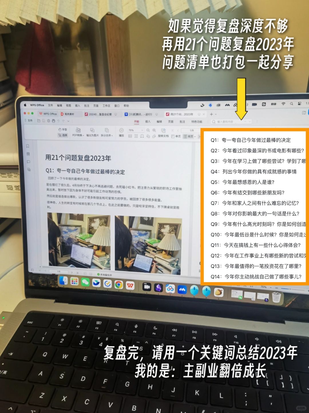 包括了个人成长、工作事业、身体健康等9个模板21个问题,我会打包分享