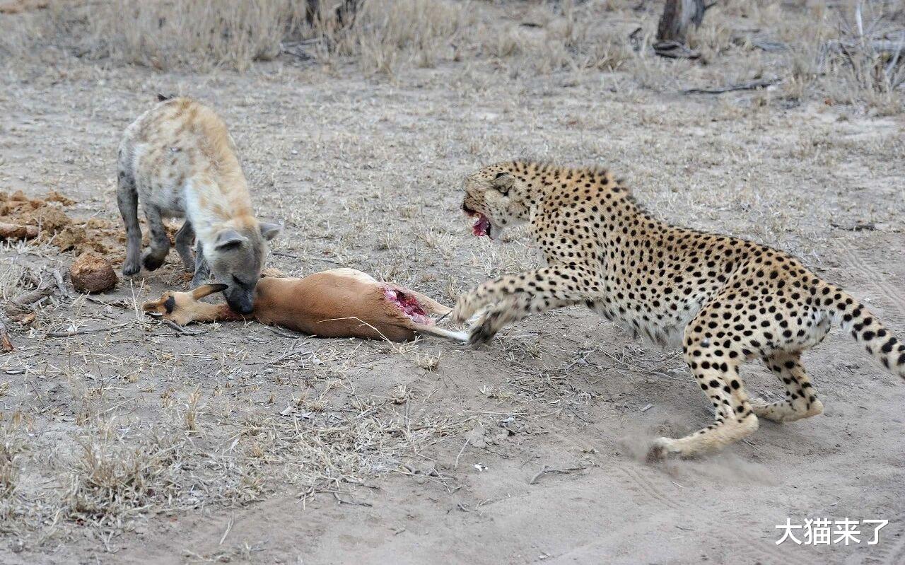 很多食肉动物都是猎豹强有力的竞争对手,比如狮子、斑鬣狗、非洲野狗。为了躲避竞争,猎豹通常在白天捕猎。但即使如此,它们一旦捕获到猎物,必须快速进食或转移,因为猎豹打不过一只鬣狗甚至体型更小的野狗。
