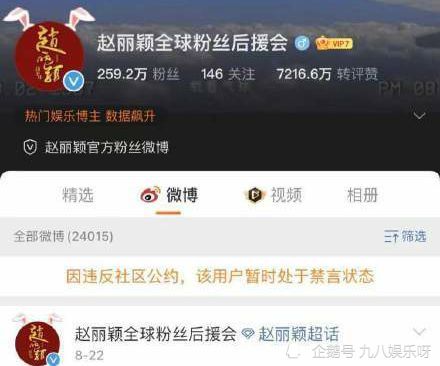 近期随着粉丝的反应越来越激烈,整个平台也都对此做出来回应,包括赵丽颖的全球粉丝后援会和赵丽颖的工作室账号都纷纷禁言了。
